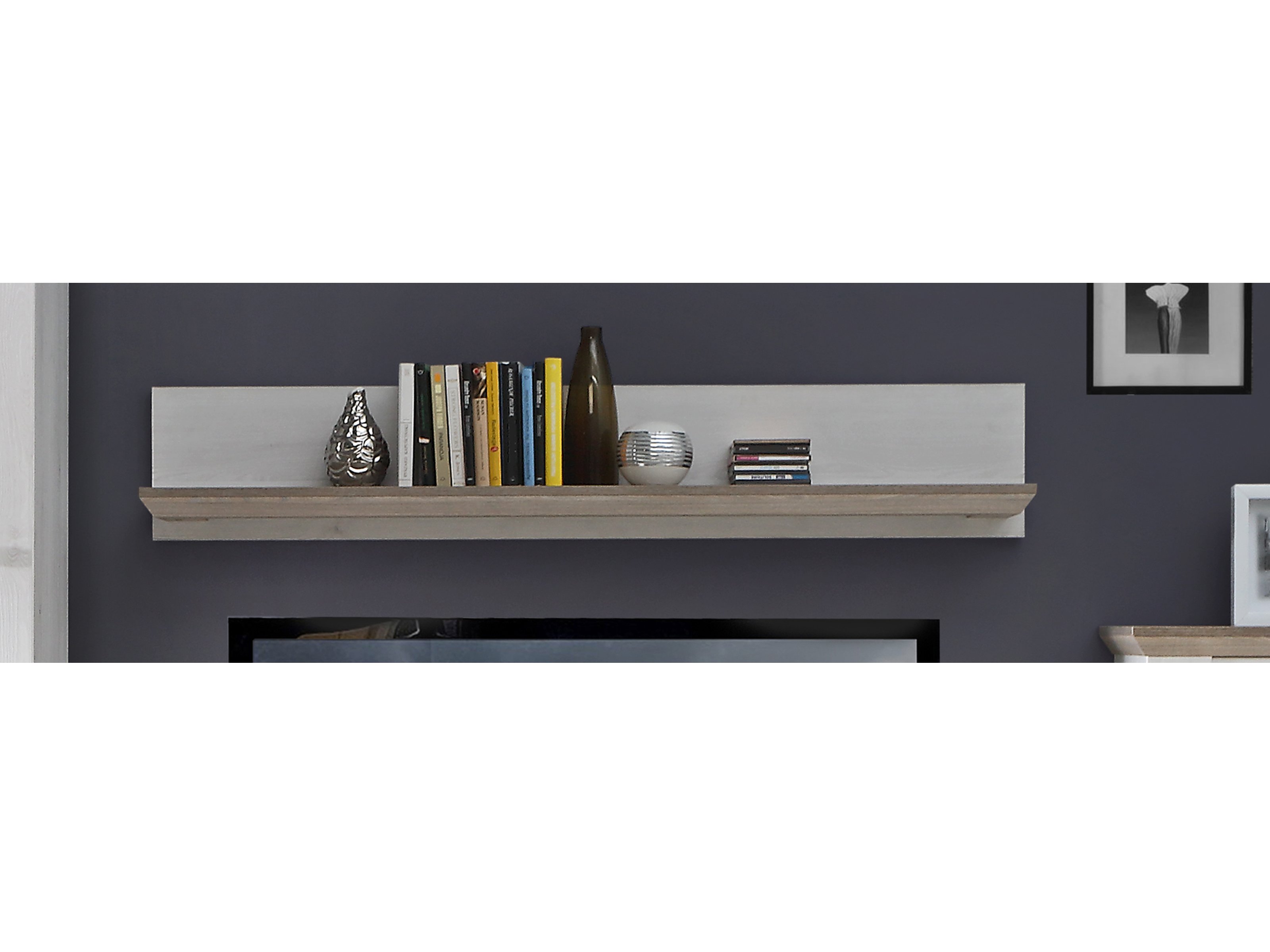 [BulletPoints] => Modernes Wandboard;aus Spanplatte;in Schneeeiche Nachbildung;mit 1 Ablageboden in Nelson Eiche Nachbildung;Breite 145 cm, Höhe 22,1cm, Tiefe 25,6 cm