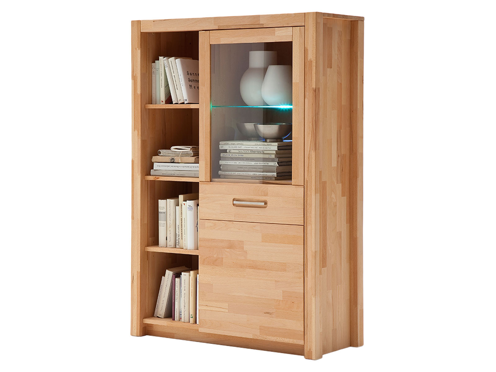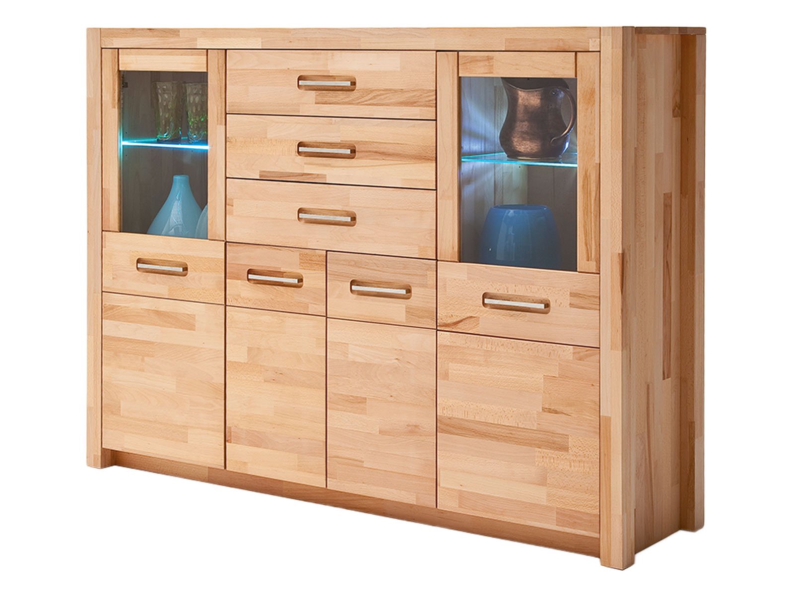 Leduc I Highboard – Massivholz Highboard mit LED-Beleuchtung und Stauraum für Wohnzimmer & Speisezimmer