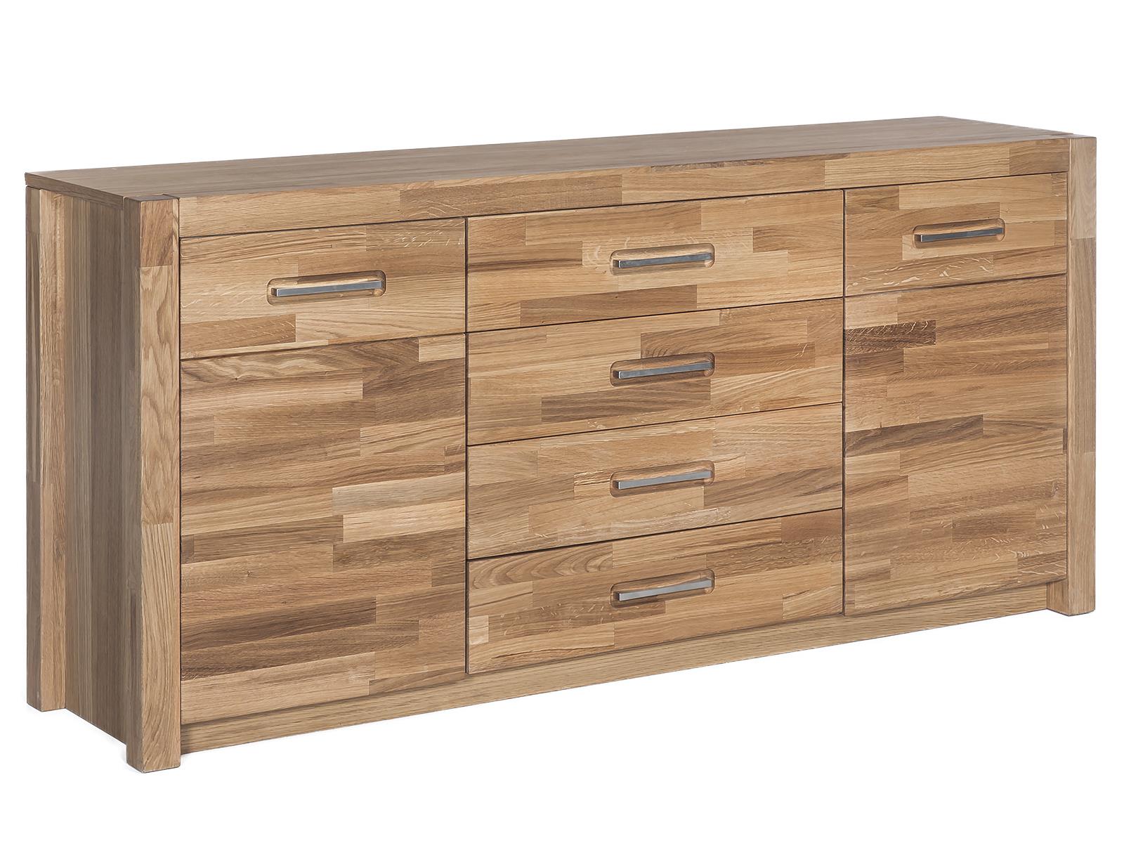 Gefertigt aus massivem, keilverzinktem Buchenholz in Kernbuche-Optik, überzeugt das Highboard nicht nur optisch, sondern auch durch seine Langlebigkeit. Die geölte Oberfläche betont die natürliche Maserung und sorgt für ein angenehmes Raumklima, während die Metallgriffe für eine moderne Note sorgen.
