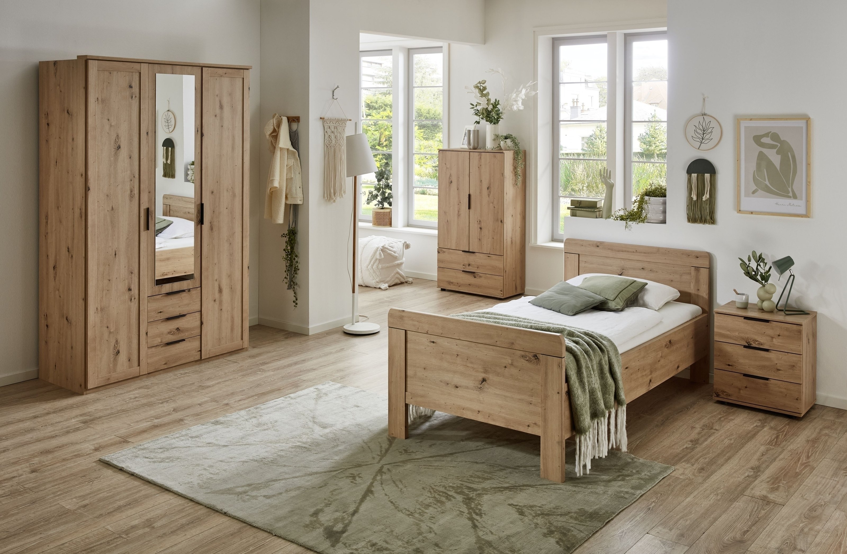 Die warme Artisan Eiche Nachbildung sorgt für eine natürliche Optik, die sich harmonisch in verschiedene Schlafzimmerstile einfügt. Die Kombination aus Holzwerkstoff, MDF und Spanplatte garantiert Stabilität und Langlebigkeit.