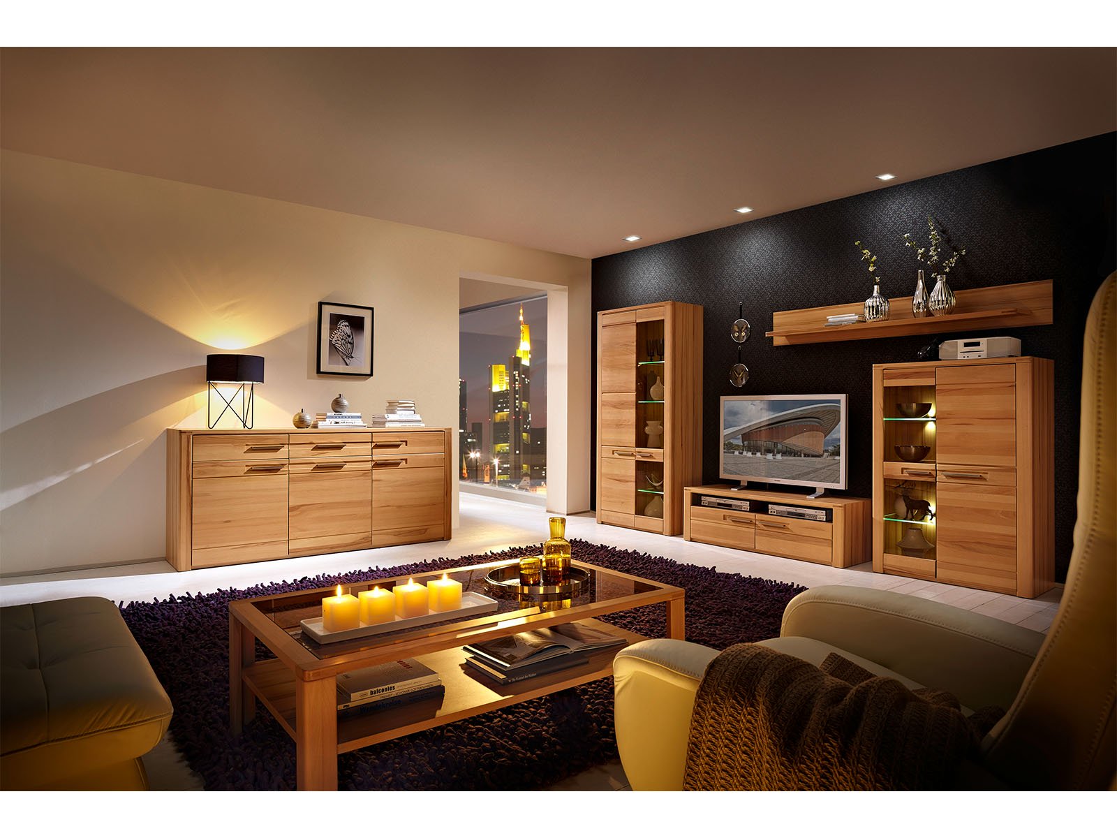 ✔Moderne Optik mit massiv lackierter Kernbuche-Front und Glas-Elementen – perfekt für zeitgemäße Wohnräume