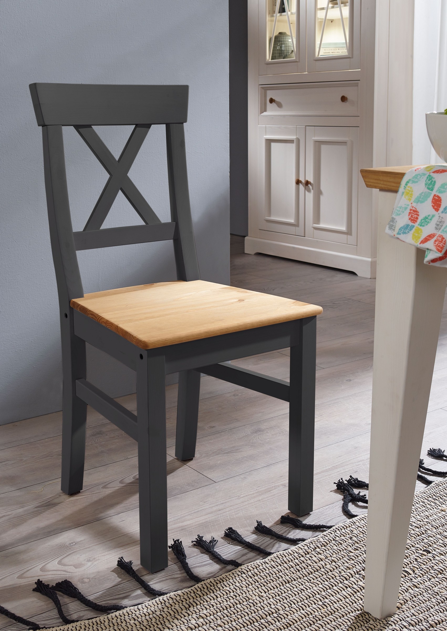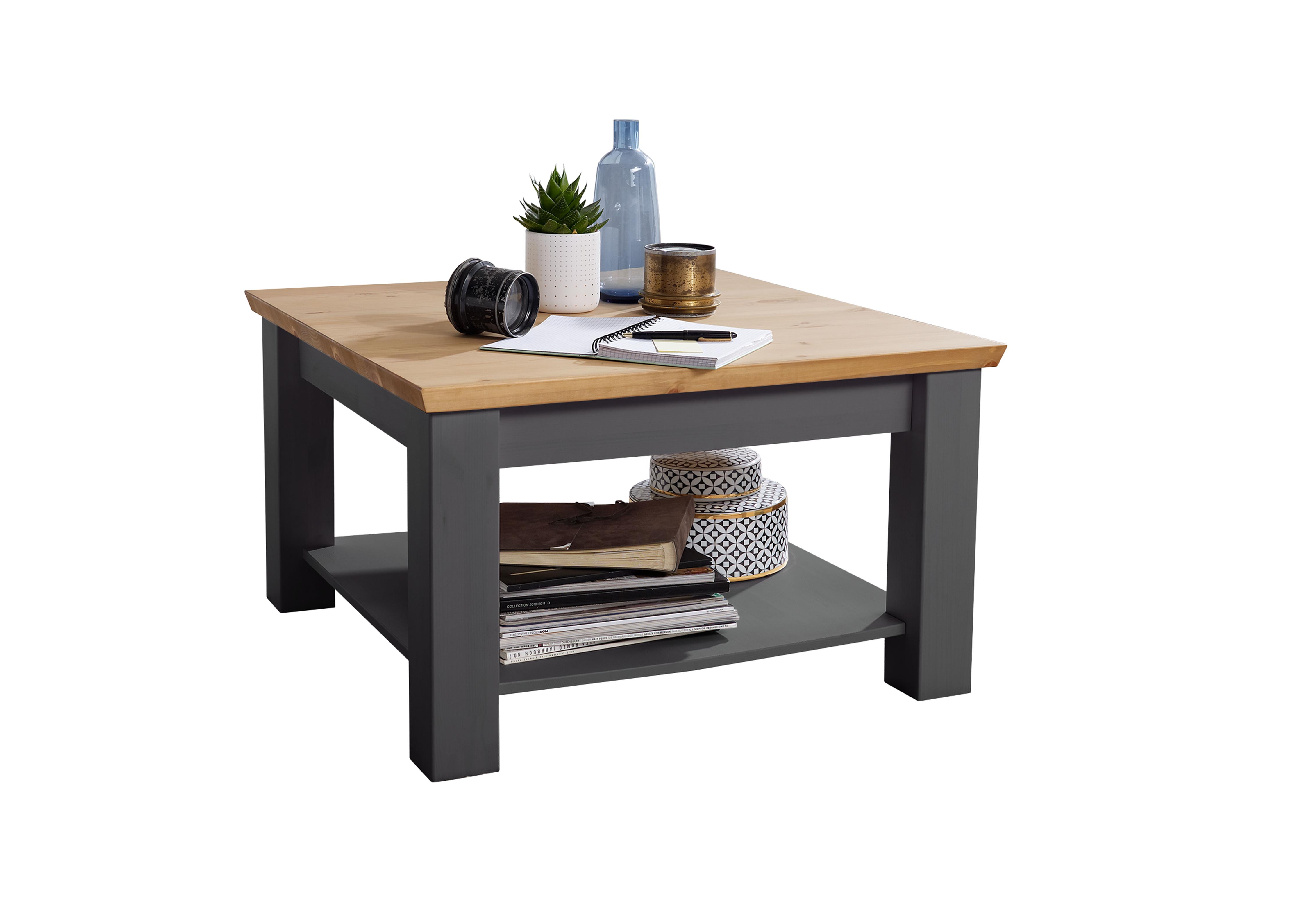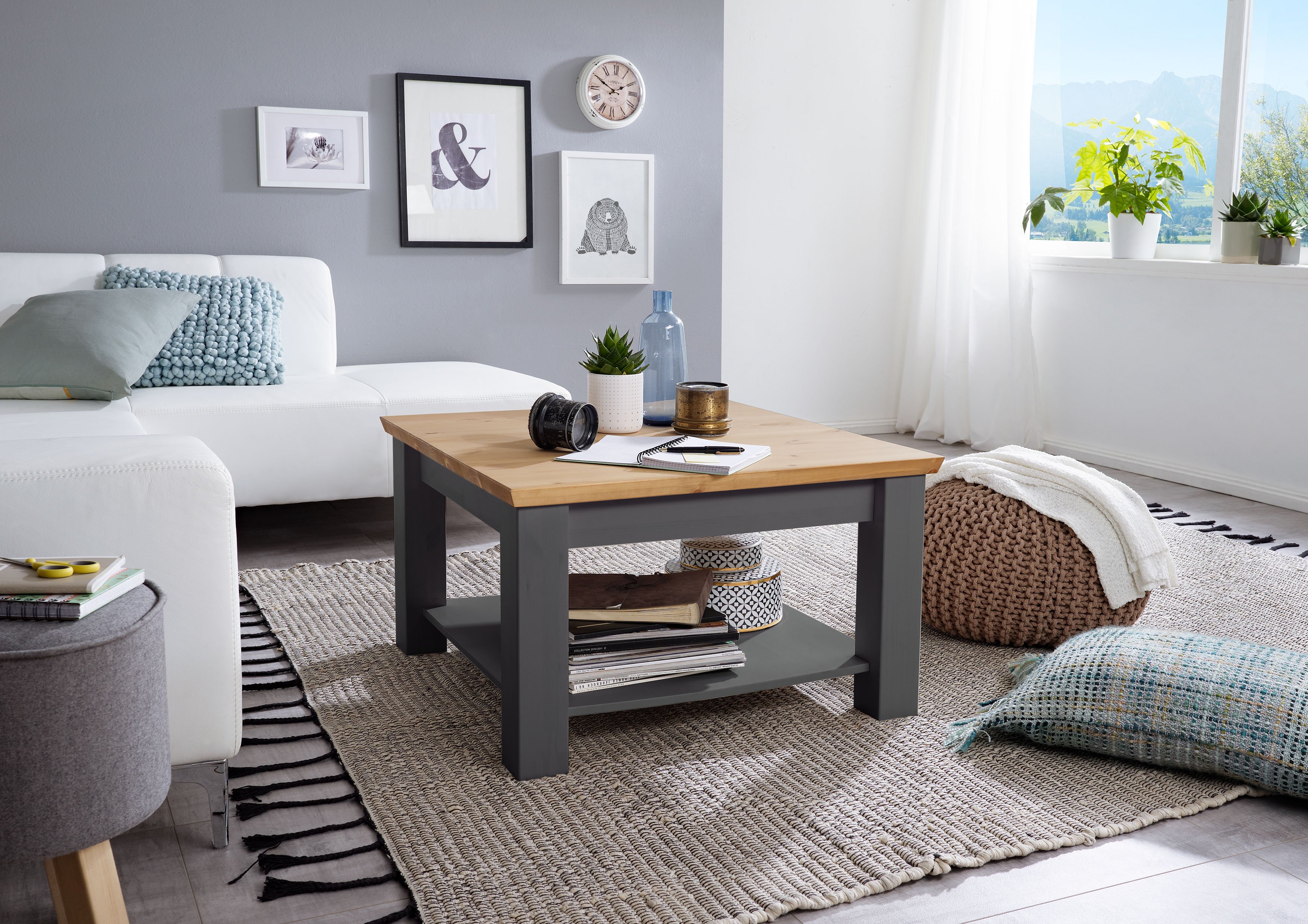 ✔Als massives Kiefermöbel in Grau mit eichefarbigen Absetzungen lässt es sich vielseitig mit anderen Wohnprogrammen kombinieren.