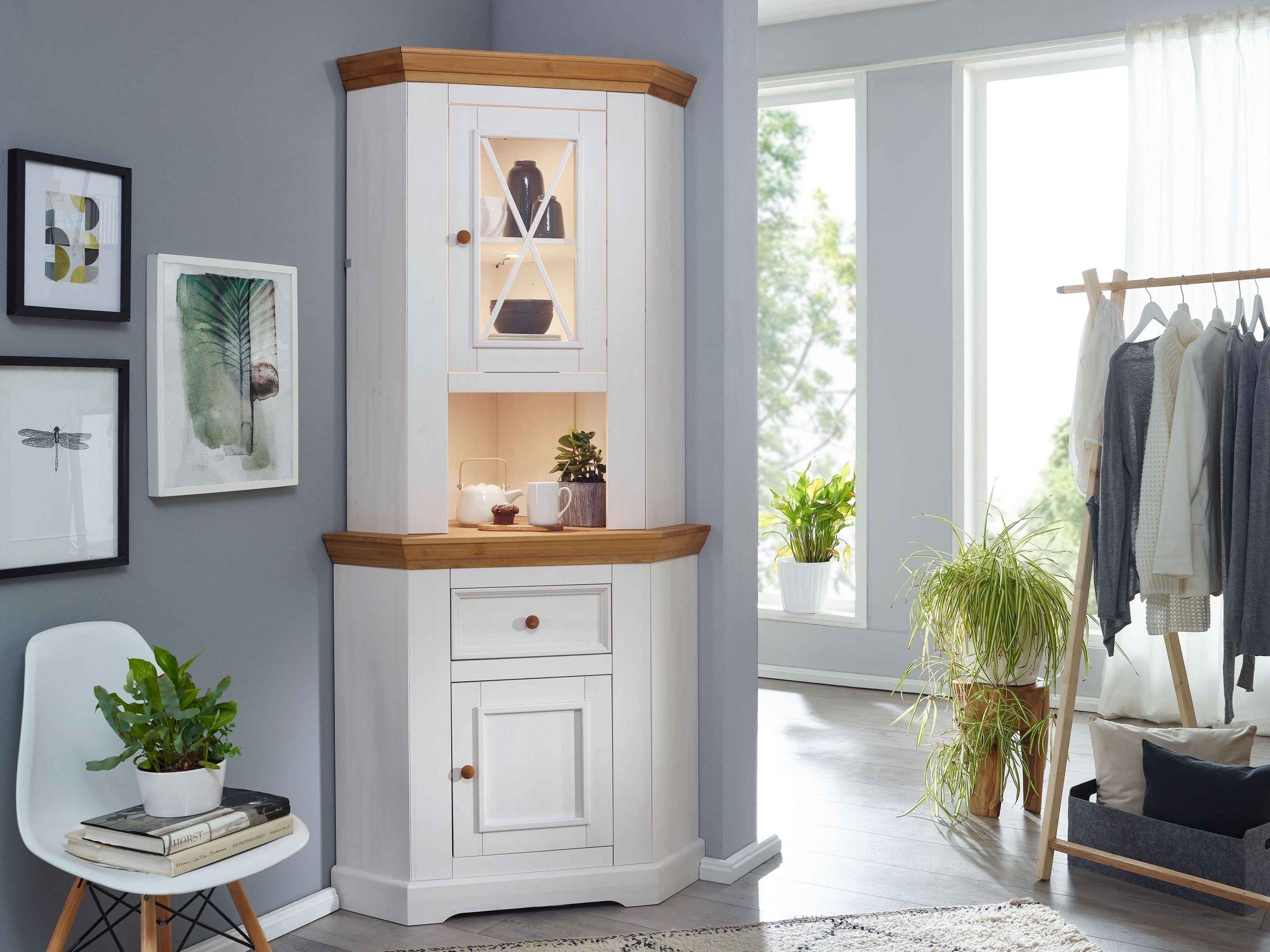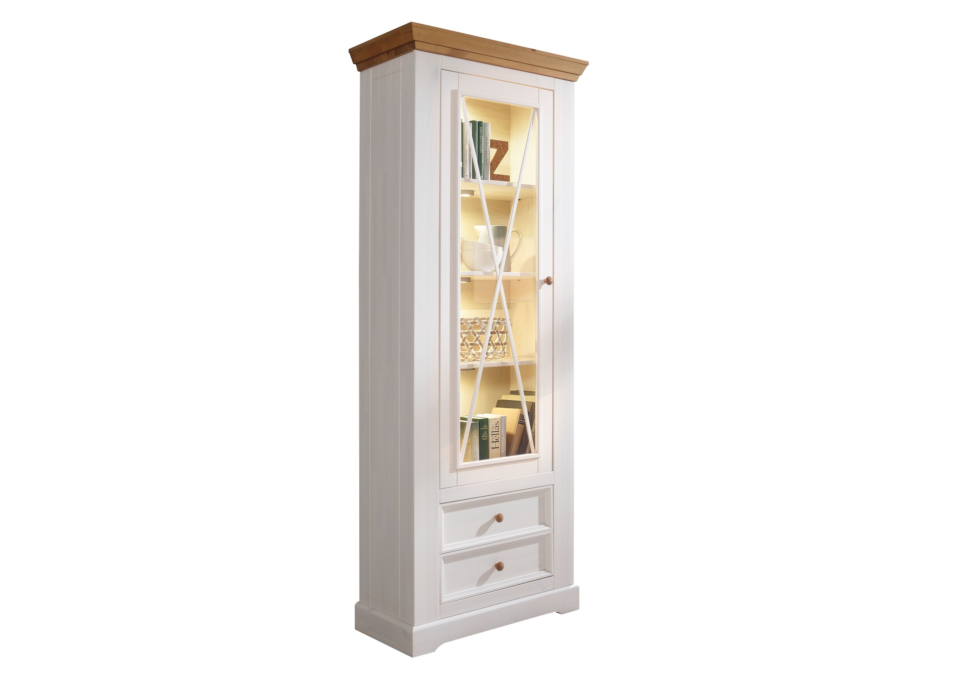 ✔Mit einer Glastür samt Holzeinlegeboden setzen Sie Geschirr oder Dekoration wirkungsvoll in Szene.