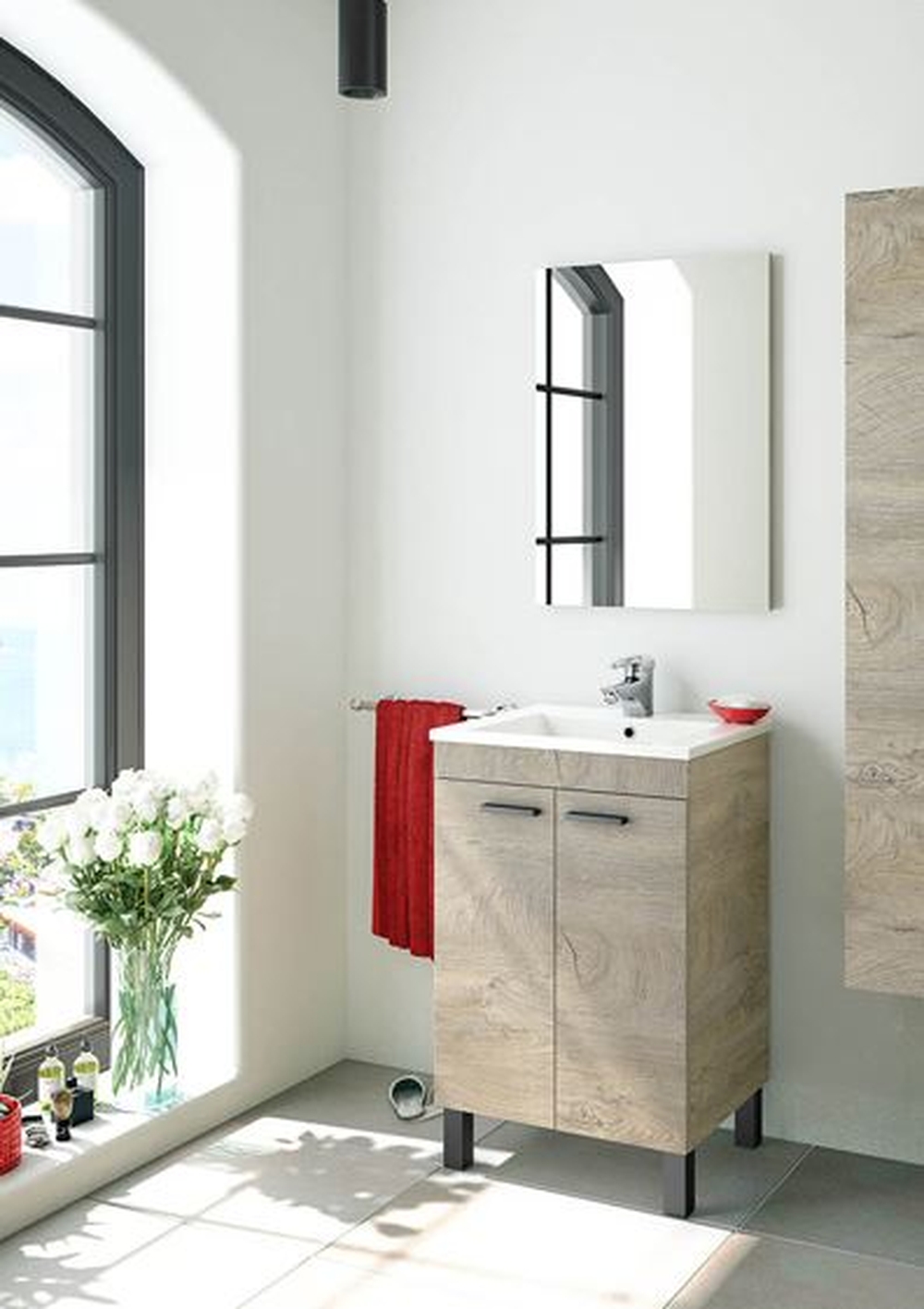 [Bullet-Point 1] => Der KONCEPT Wandhängeschrank mit Maßen von 30x85x25 cm bietet optimalen Stauraum für Ihr Badezimmer.