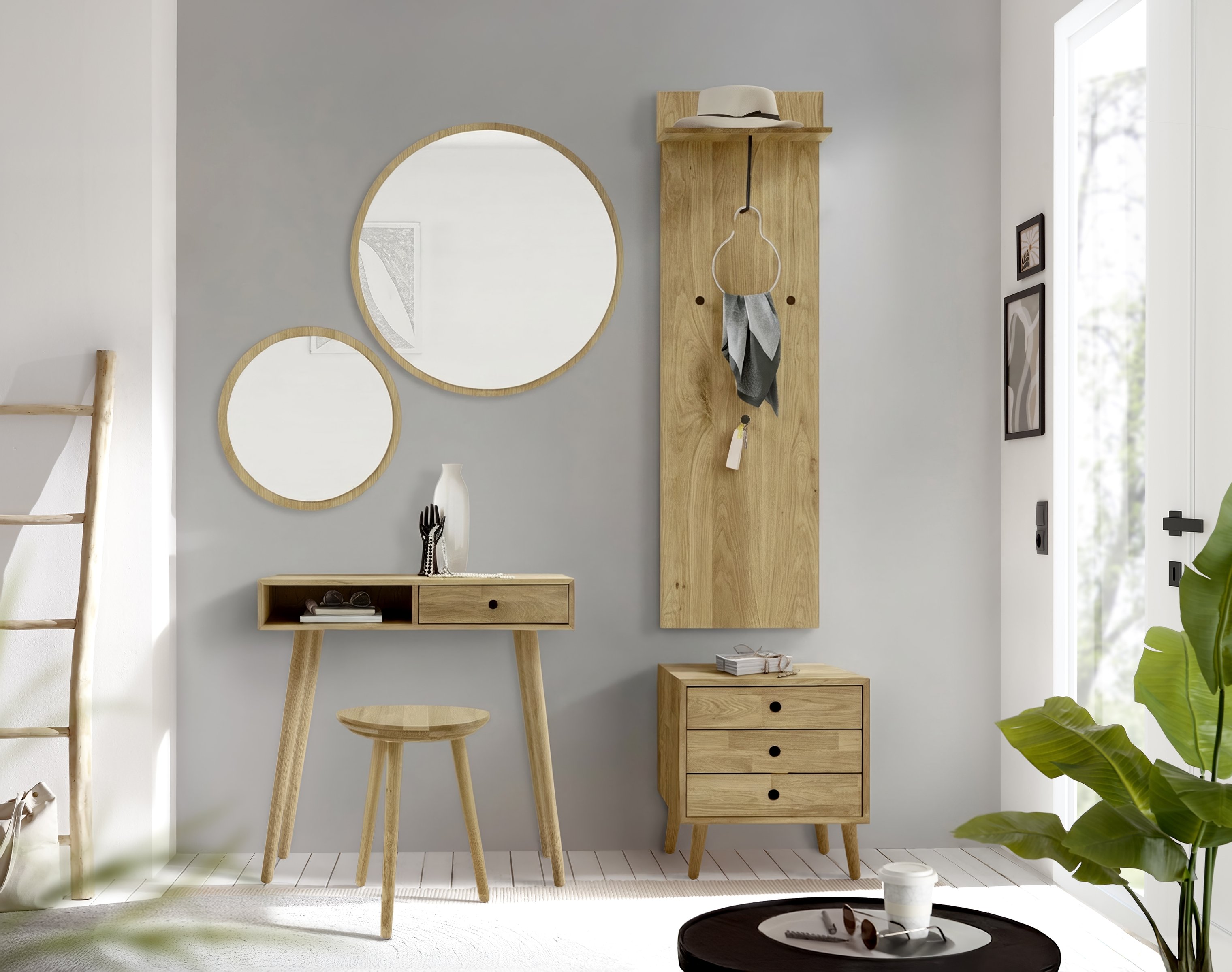 [metaDescription] => Der runde Wandspiegel Anacortes von möbelando überzeugt mit einem eleganten Rahmen aus Eiche-Holzfurnier und setzt stilvolle Akzente in jedem Eingangs- oder