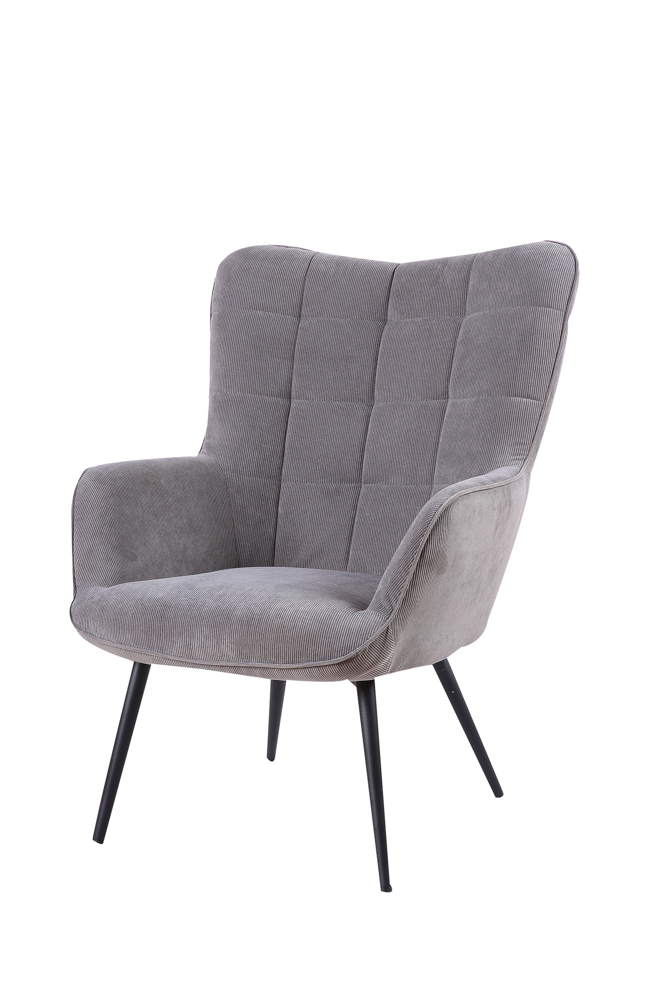 Besonderes Highlight ist der weiche Cordbezug in Grau mit moderner Steppung, der für eine gemütliche Optik sorgt und sich angenehm anfühlt. Zusammen mit den hochwertigen Füßen aus pulverbeschichtetem Metall entsteht ein stilvoller Look, der sowohl zu schlichten als auch zu ausdrucksstarken Wohnkonzepten passt.