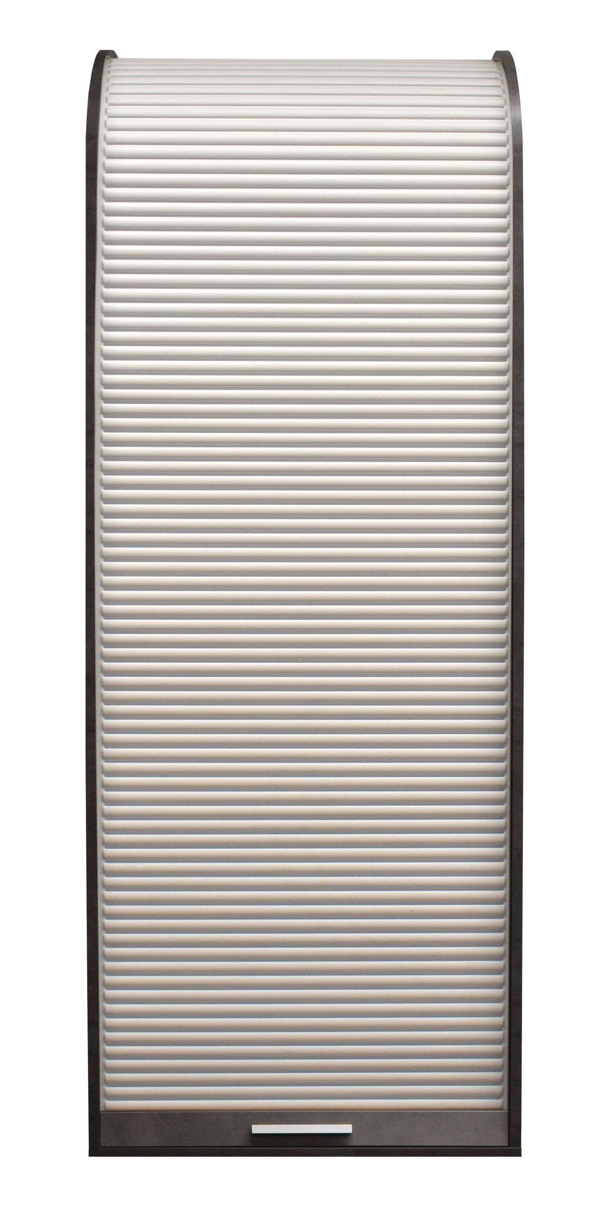 Der Jalousieschrank 780-RL_69-192 von möbelando ist ein funktionaler Aufbewahrungsschrank mit Rolladentür in moderner Farbkombination graphit / weiß und bietet praktischen Stauraum auf kompakter Grundfläche.