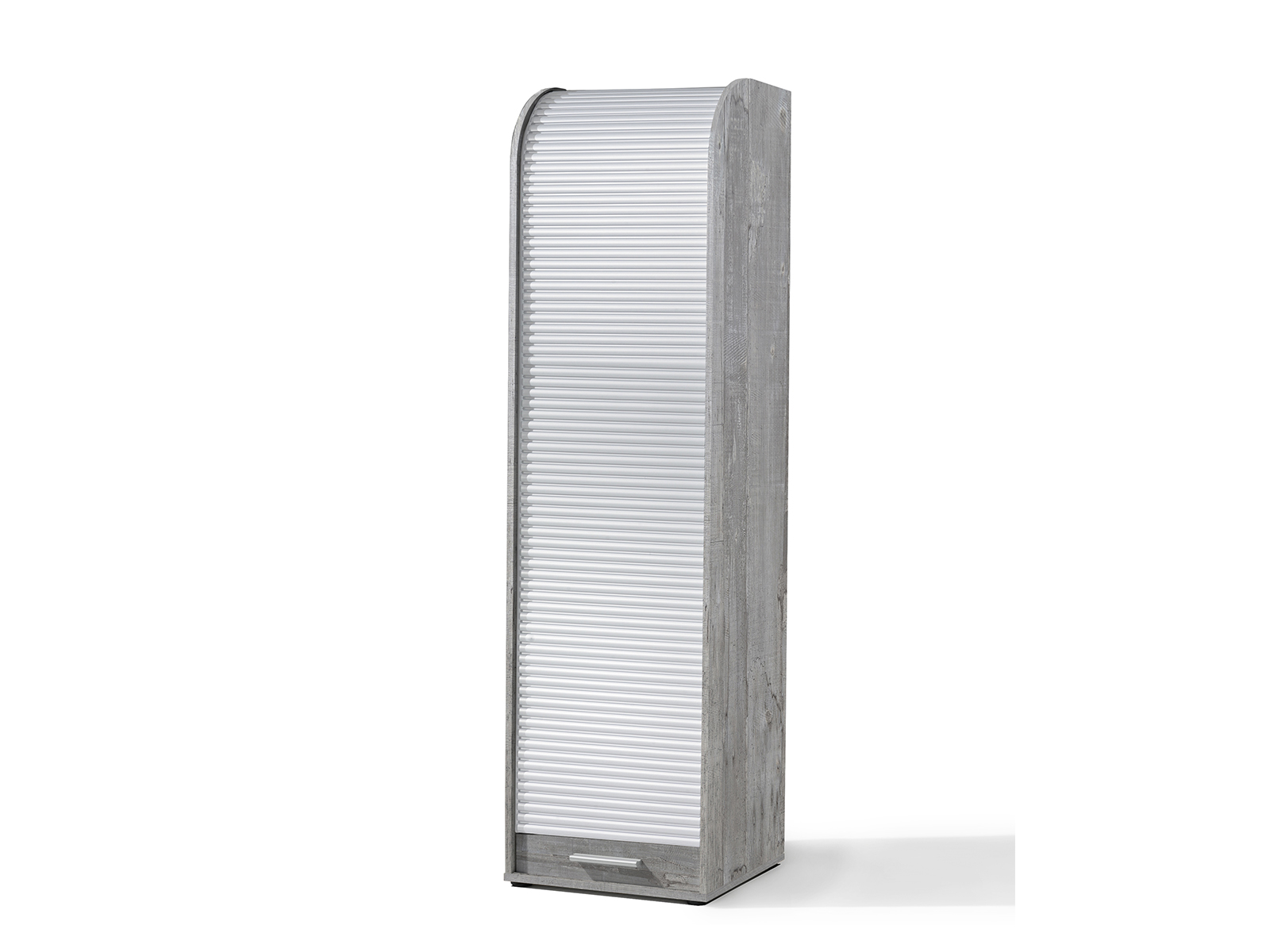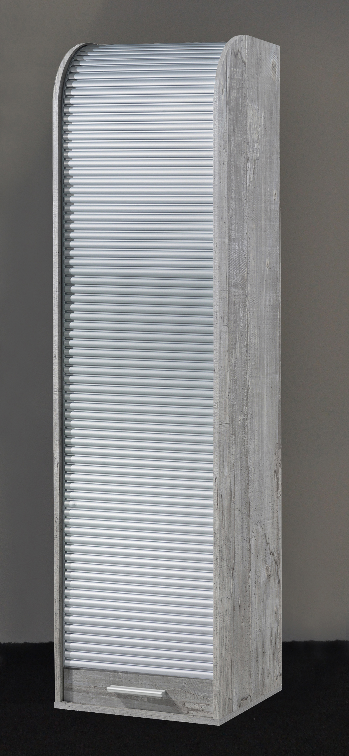 [metaDescription] => Moderner Rolloschrank aus Spanplatte und Kunststoff in Farbausführung "Beton/weiß" mit 2 verstellbaren Einlegeböden und 1 fester Mittelboden Breite 45 cm, H