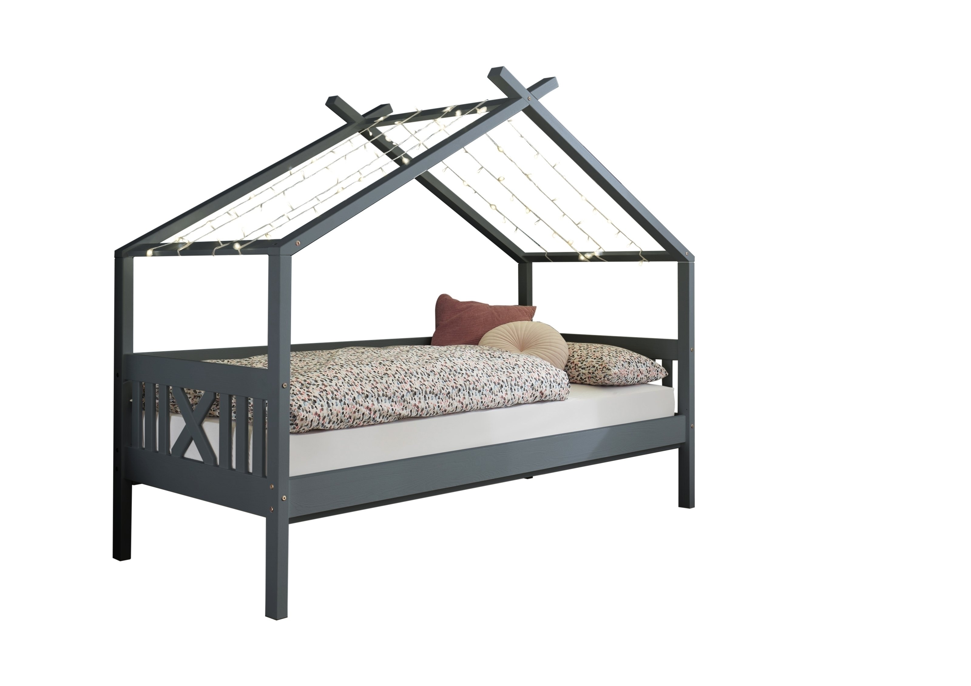 Das Kinderbett Liliane kombiniert modernes Design mit natürlicher Ästhetik und wird so zum Highlight in jedem Kinderzimmer. Als Himmelbett gestaltet, lädt es Kinder dazu ein, ihrer Fantasie freien Lauf zu lassen – ob als gemütliche Schlafhöhle oder als kleiner Rückzugsort zum Lesen und Träumen. Die grau lackierte Oberfläche wirkt zugleich elegant und zeitlos und passt hervorragend zu einem natürlichen Wohnstil.