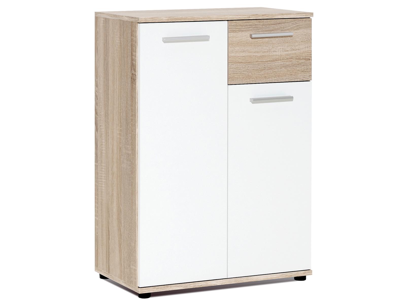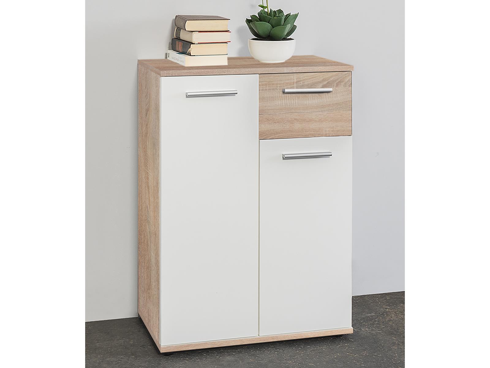 [metaDescription] => Moderne Kommode aus Spanplatte in Weiß mit Absetzungen in Sonoma-Eiche Nachbildung mit 1 Schubkasten und 2 Türen dahinter je 1 Boden Breite 60 cm, Höhe 85 c