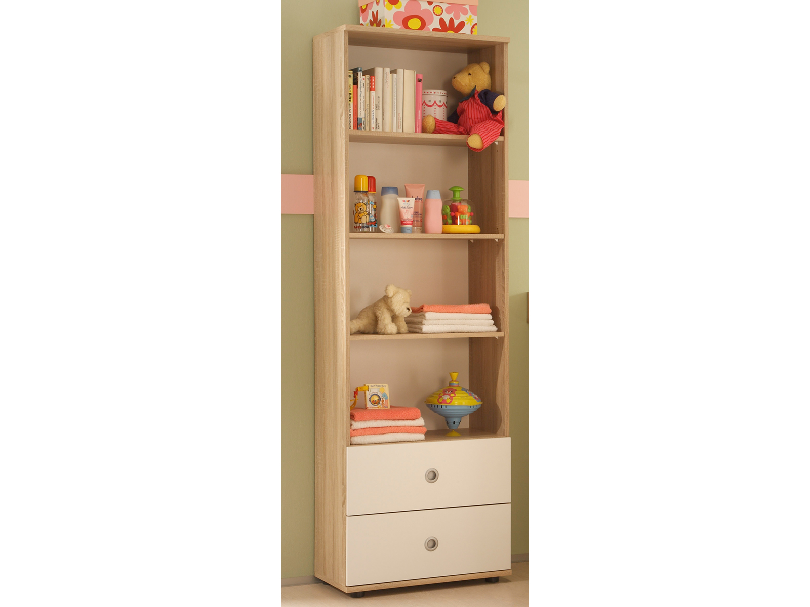 Gefertigt aus Spanplatte mit hochwertiger Sonoma-Eiche Nachbildung und weißen Absetzungen fügt sich „Floris I“ harmonisch in moderne Baby- und Kinderzimmer ein. Die helle, freundliche Farbgebung passt sowohl ins Jungen- als auch ins Mädchenzimmer und schafft eine ruhige, friedvolle Atmosphäre.