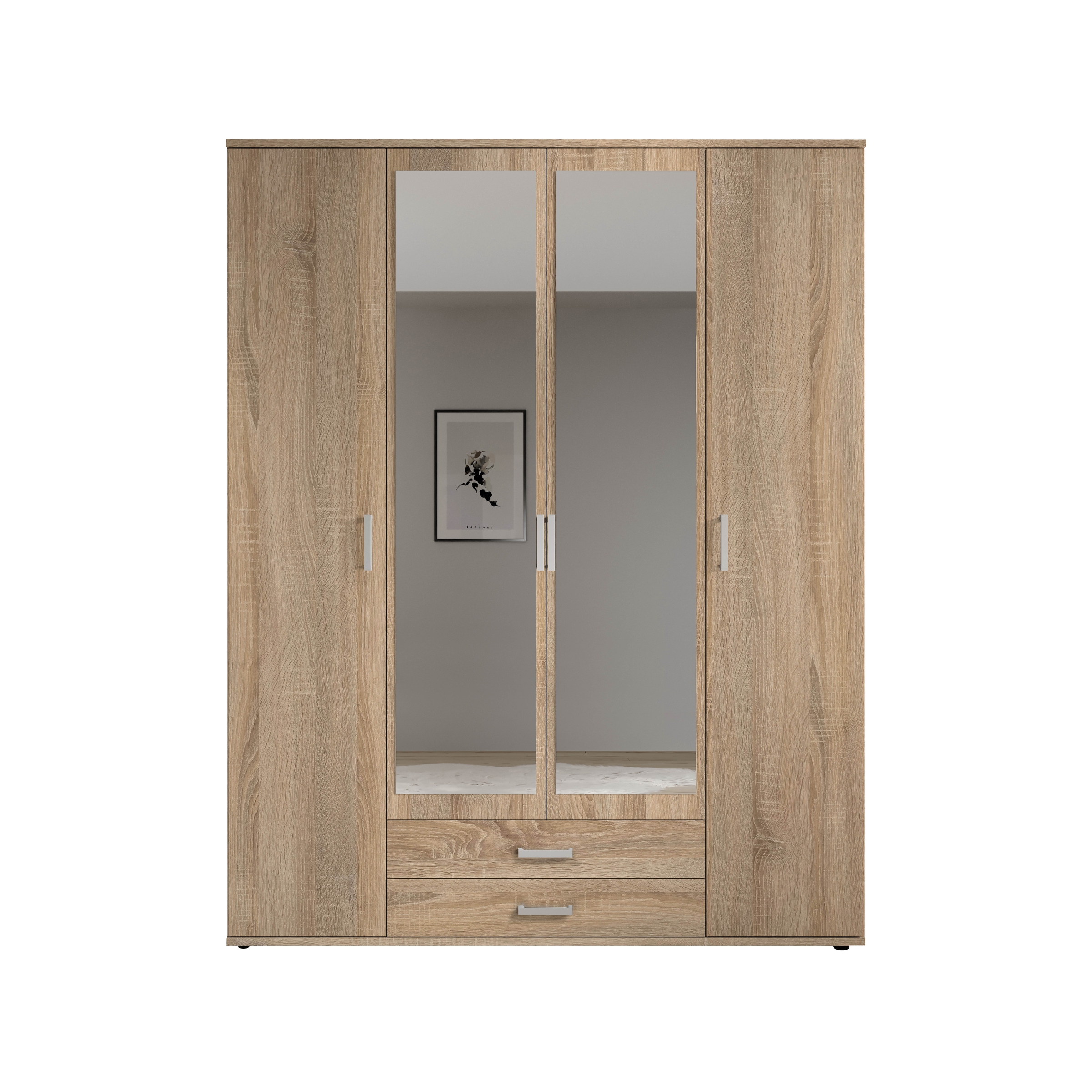 [metaDescription] => Eleganter Kleiderschrank 4-türig mit viel Stauraum - Vielseitiger Drehtürenschrank in Weiß mit Spiegeltüren - 160 x 196 x 54 cm (B/H/T)