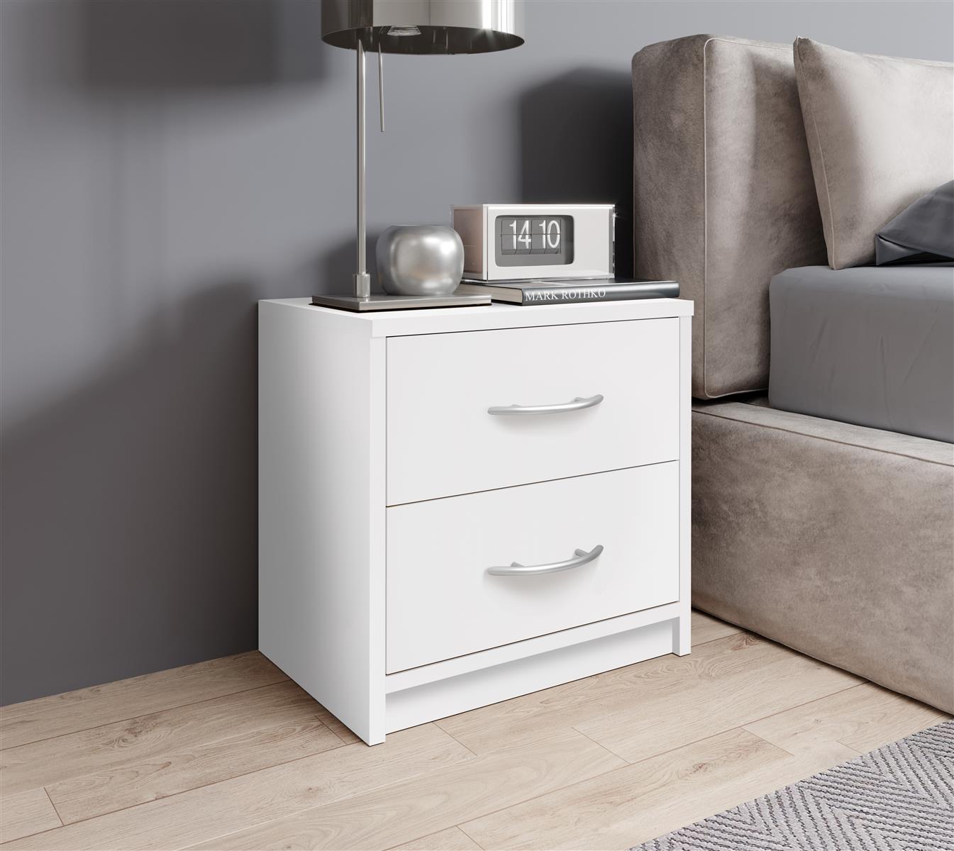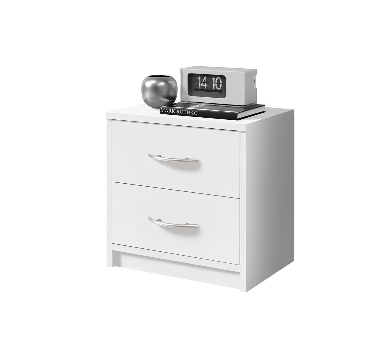 [BulletPoints] => Nachttisch;in Weiß;Schlichter Nachtschrank mit zwei Schubladen;passend zu jedem Bett & Schlafzimmer;39 x 39 x 28 cm (B/H/T)