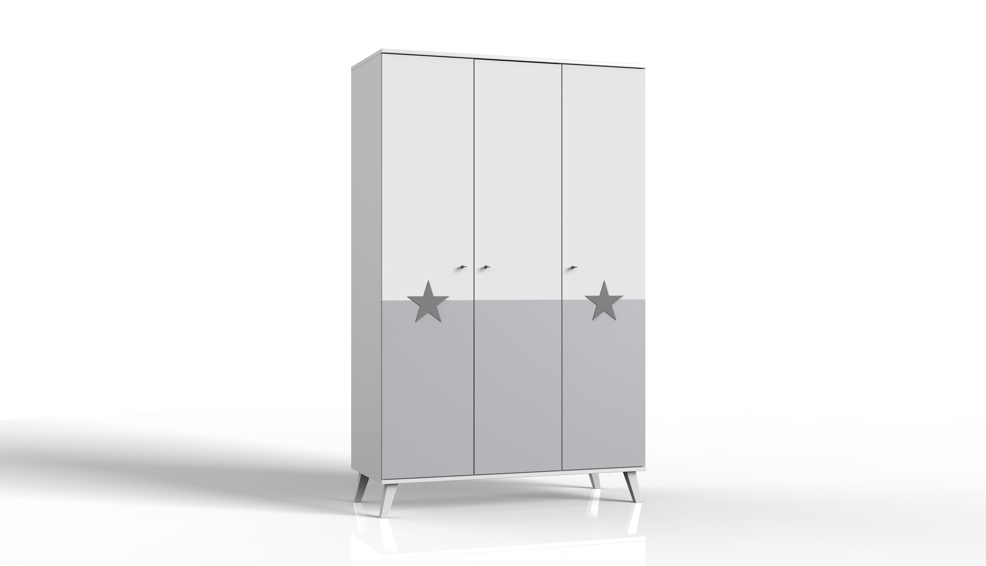 Die Jugendzimmer-Serie ROCKY von freiraum verbindet modernes Design mit durchdachter Funktionalität. Der Kleiderschrank in WEISS + LIGHT GREY bietet mit seinen drei Drehtüren und der klar strukturierten Innenaufteilung eine ideale Stauraumlösung für Kinder- und Jugendzimmer. Kleidung, Schul- und Freizeitartikel finden hier übersichtlich ihren Platz.