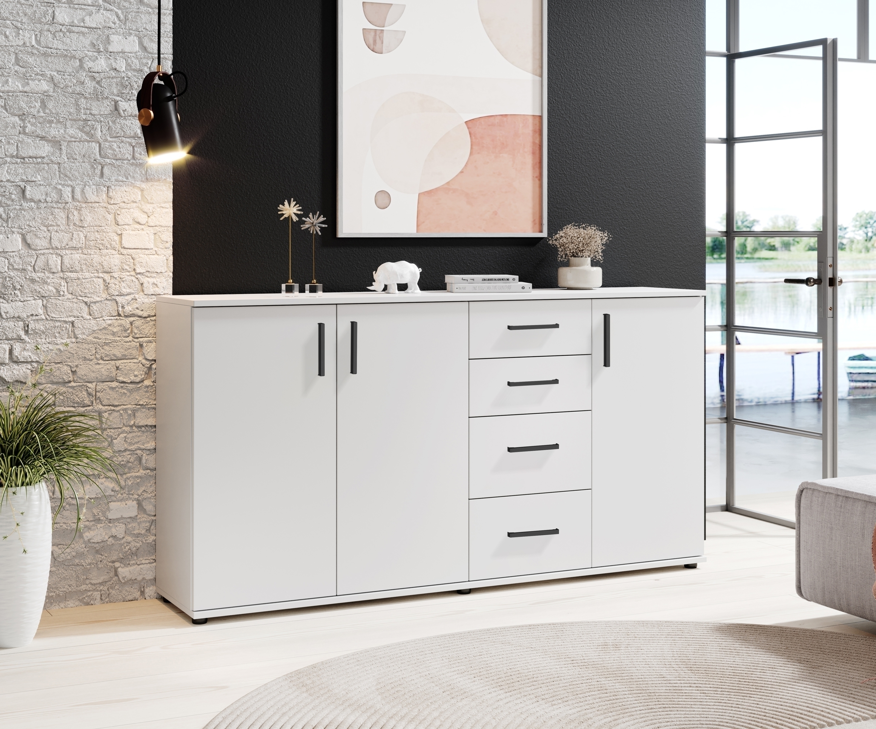 [1] => Sideboard-BC-1040-3-Tueren-4-Schubladen-weiss-160x84x35cm-BxHxT