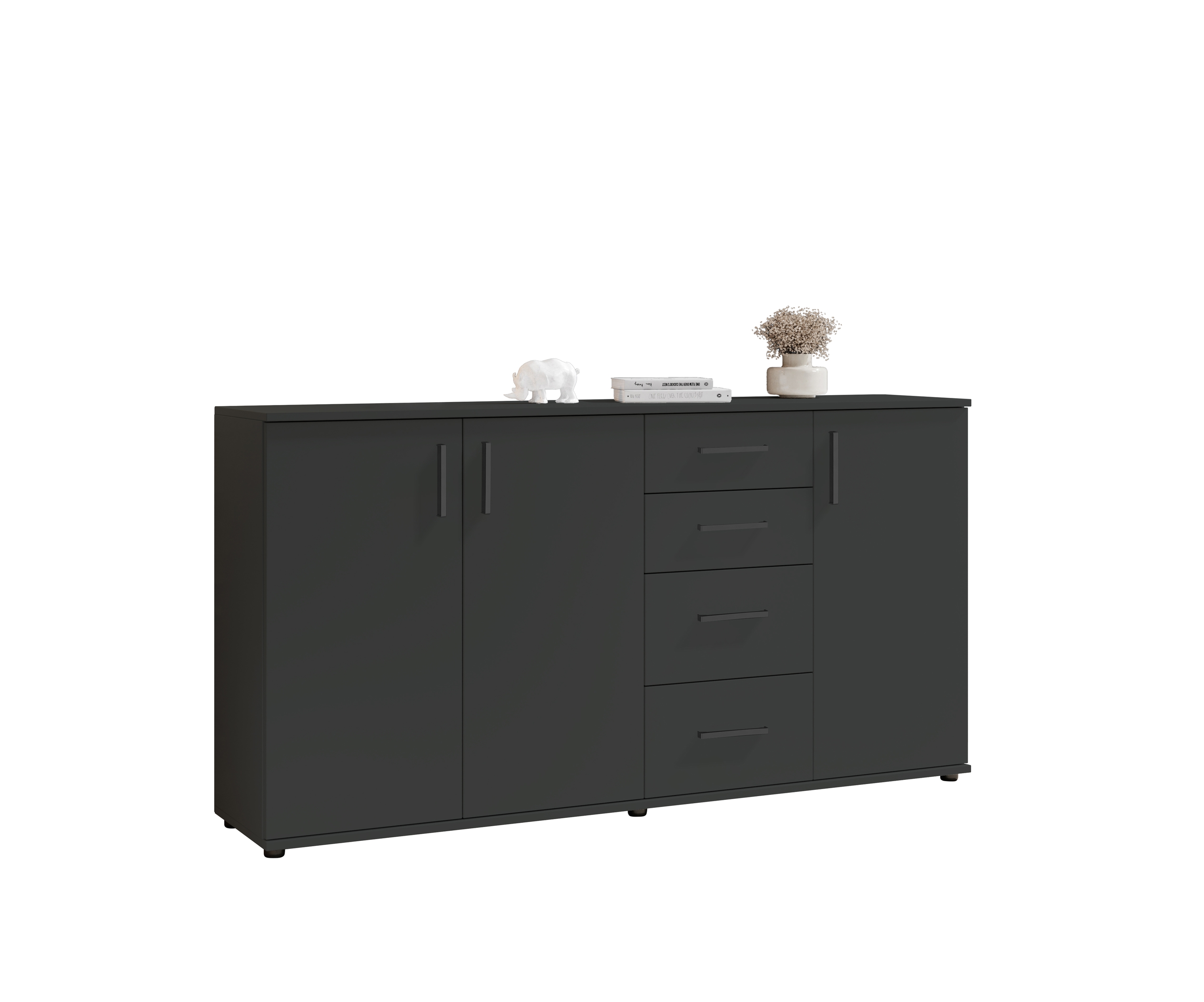 Gefertigt aus robuster Spanplatte mit pflegeleichter Beschichtung ist die BC 1040 langlebig und stabil. Drehtüren, Schubladen mit Kugelauszügen und ein belastbarer Einlegeboden bieten gut strukturierten Stauraum für Kleidung, Geschirr, Deko oder Unterlagen – ideal für eine aufgeräumte Wohnatmosphäre.