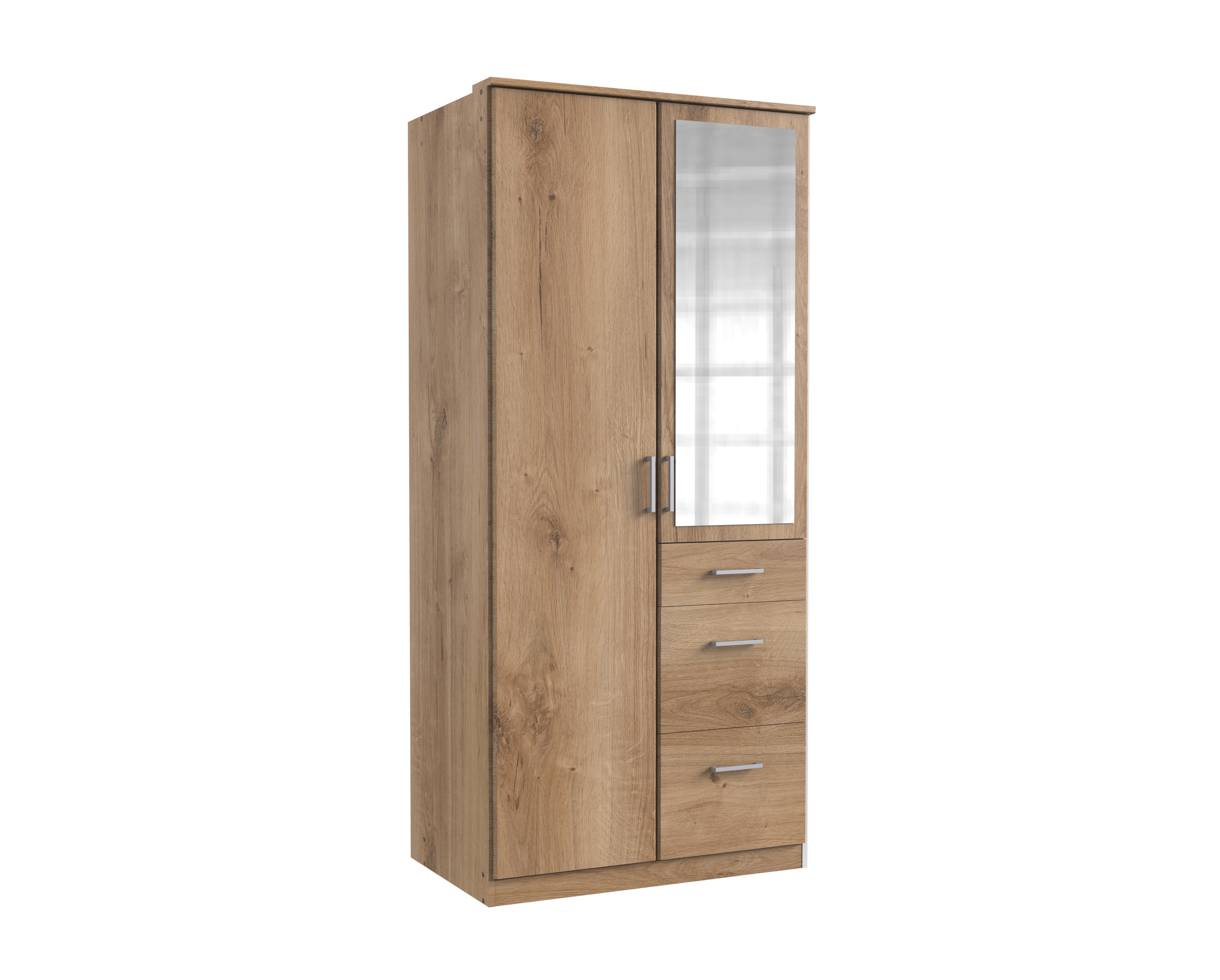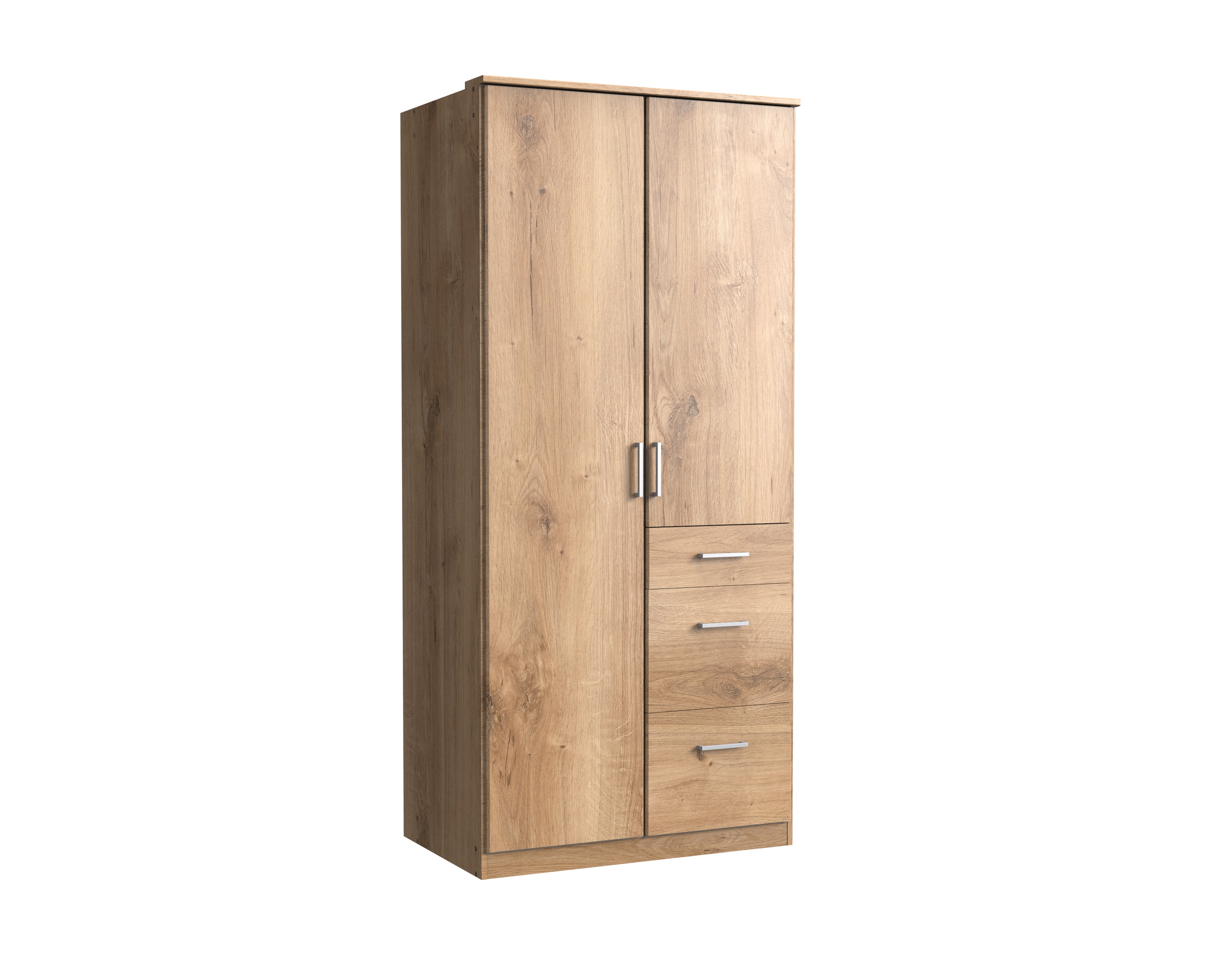 Gefertigt aus Spanplatte in Eiche-Sägerau-Nachbildung und ausgestattet mit Kunststoffgriffen, verbindet die Serie Click pflegeleichte Materialien mit einem modernen Look. Die Kommode lässt sich dank der mitgelieferten Aufbauanleitung zerlegt anliefern und flexibel in Ihr bestehendes Wohnkonzept integrieren.