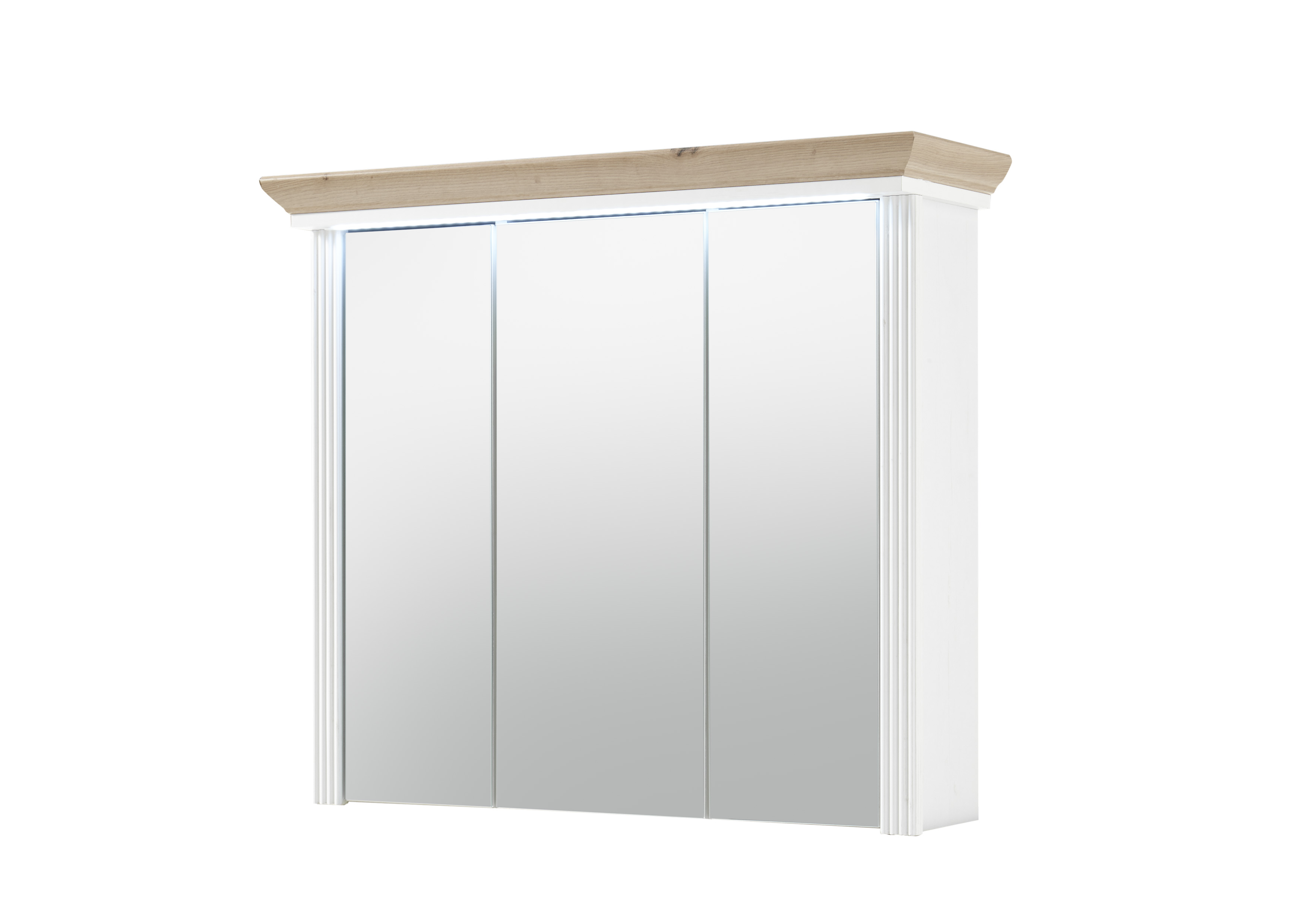 [cWert] => Spiegelschrank im Landhausstil aus Spanplatte in Pinie hell Nachbildung, Absetzung in Artisan Eiche Nachbildung mit 3 Spiegeltüren und 3 Einlegeböden, inkl. LED-Beleuchtung;Breite 83 cm, Höhe 75 cm, Tiefe 25 cm;Pflegeleichte Oberflächen;Made in Europe