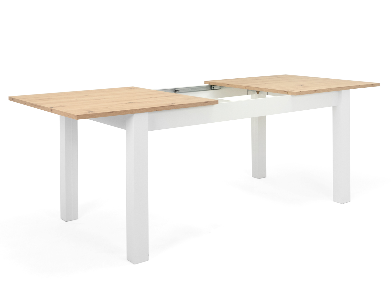 [metaDescription] => Moderner Esszimmertisch aus Spanplatte in Weiß, Tischplatte in Artisan Eiche Nachbildung mit Synchronauszug und 1 Auszugsplatte Breite 160 (215) cm, Höhe 75
