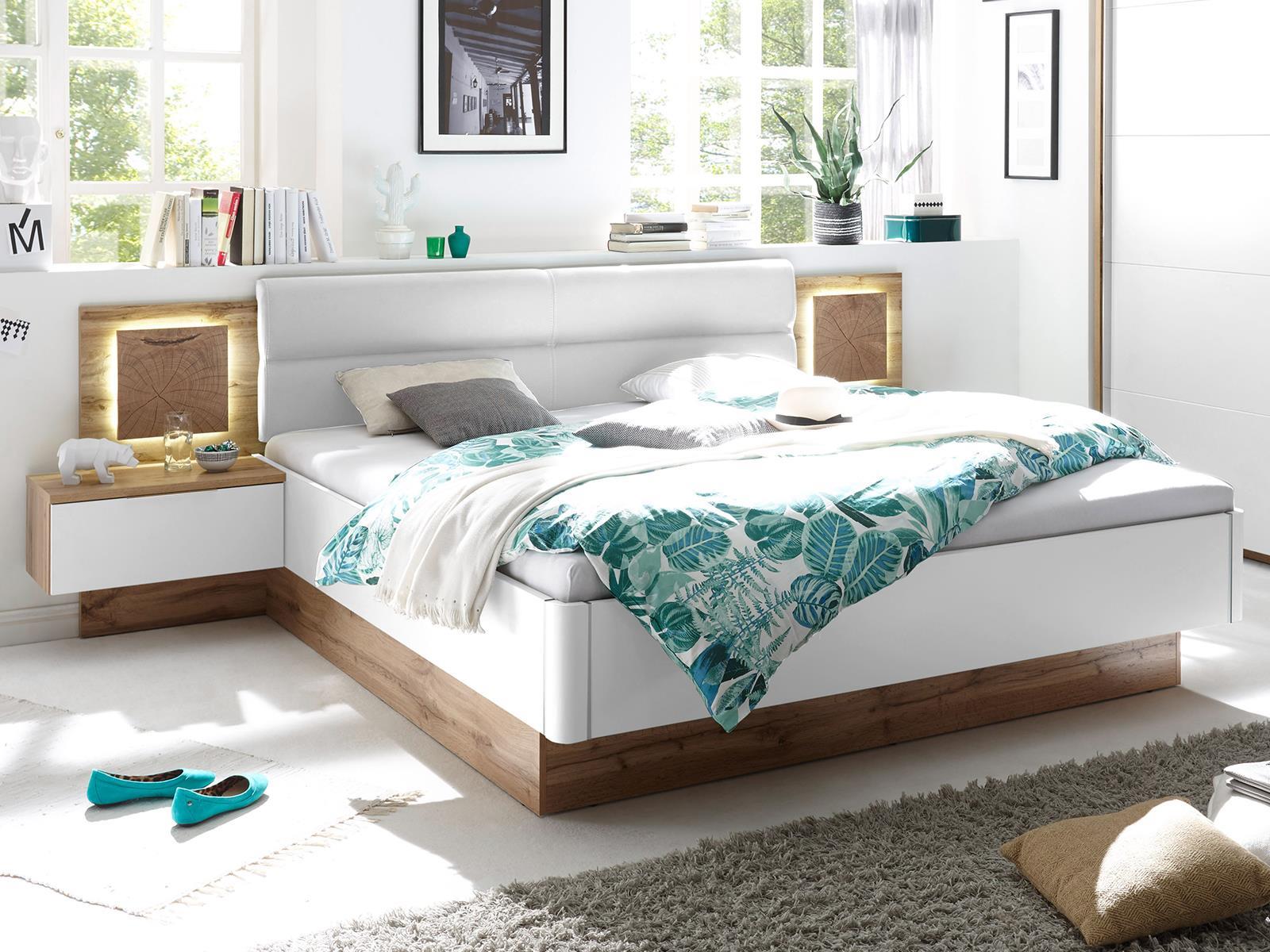 Weiß-matte Optik mit eichefarbenen Akzenten für moderne Wohnwelten.