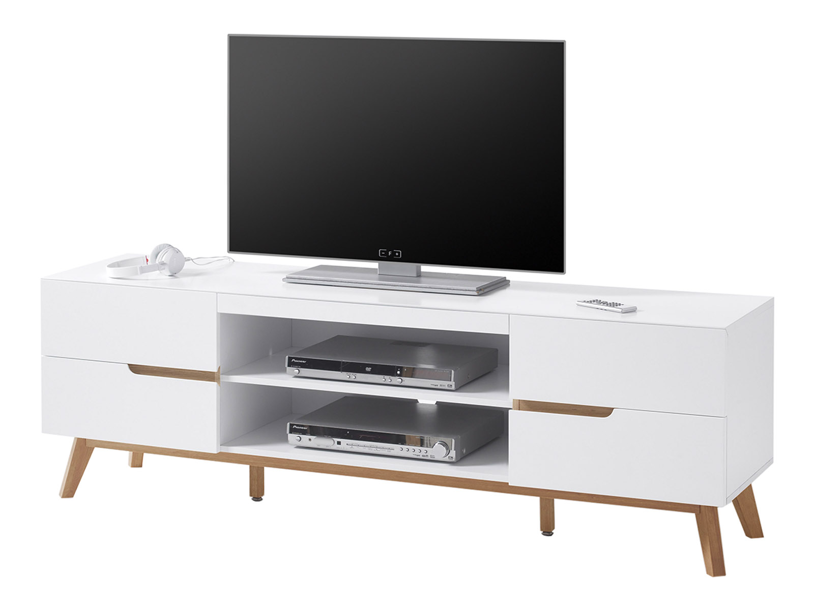 Korpus aus MDF, Beine und Absetzungen aus massivem Holz für langlebige Stabilität.