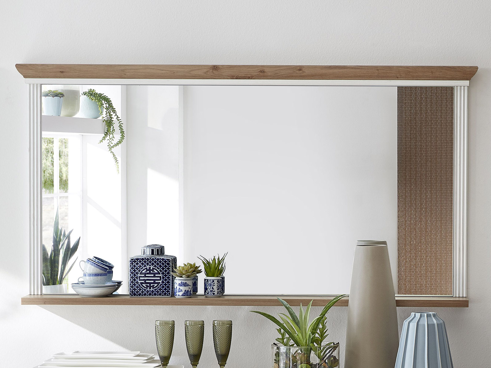 [cWert] => Spiegel im modernen Landhausstil;aus Spanplatte;in Pinie hell Nachbildung mit Absetzungen in Artisan Eiche Nachbildung;mit 1 Ablageboden;Breite 142 cm, Höhe 74 cm, Tiefe 16 cm