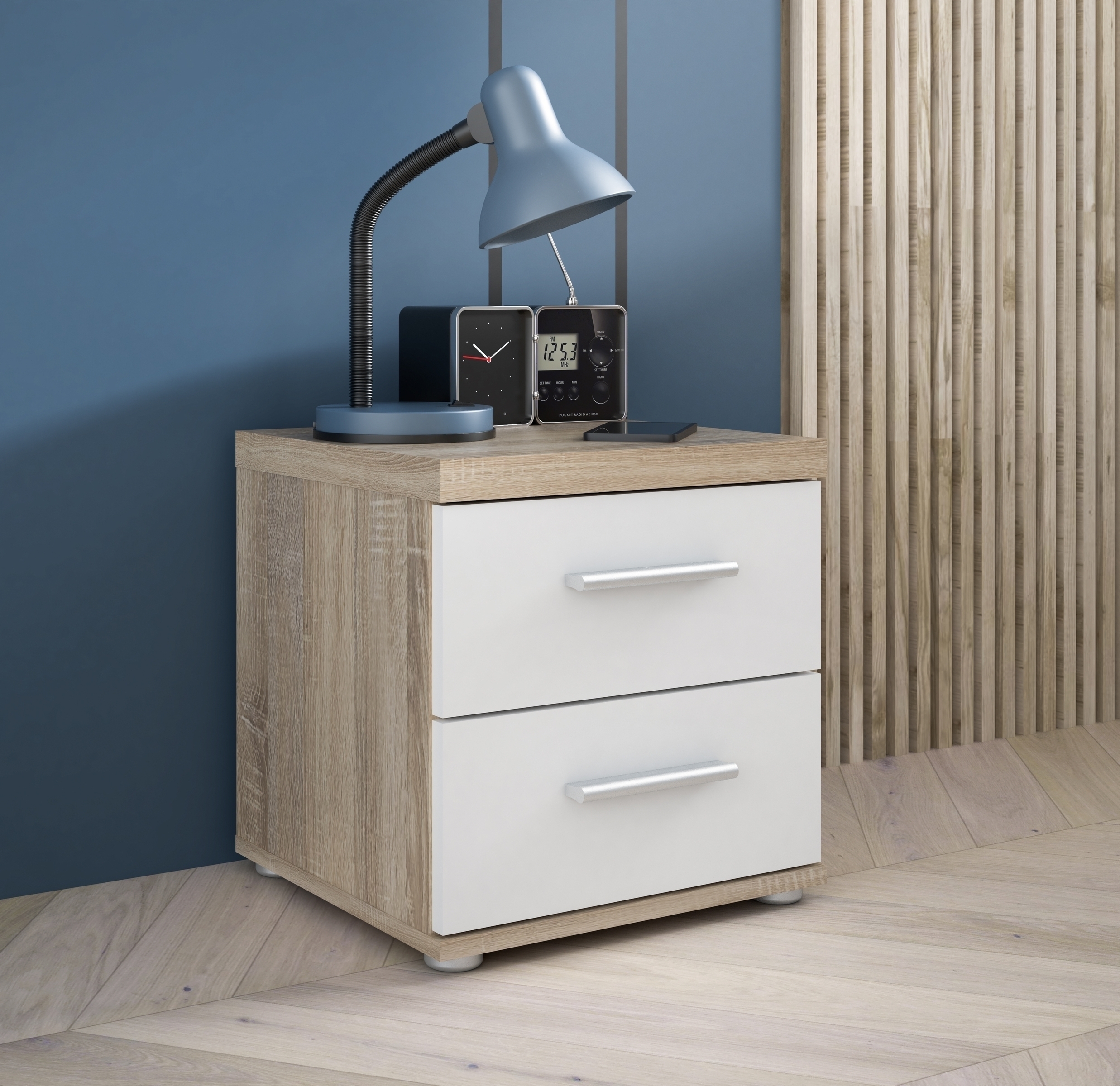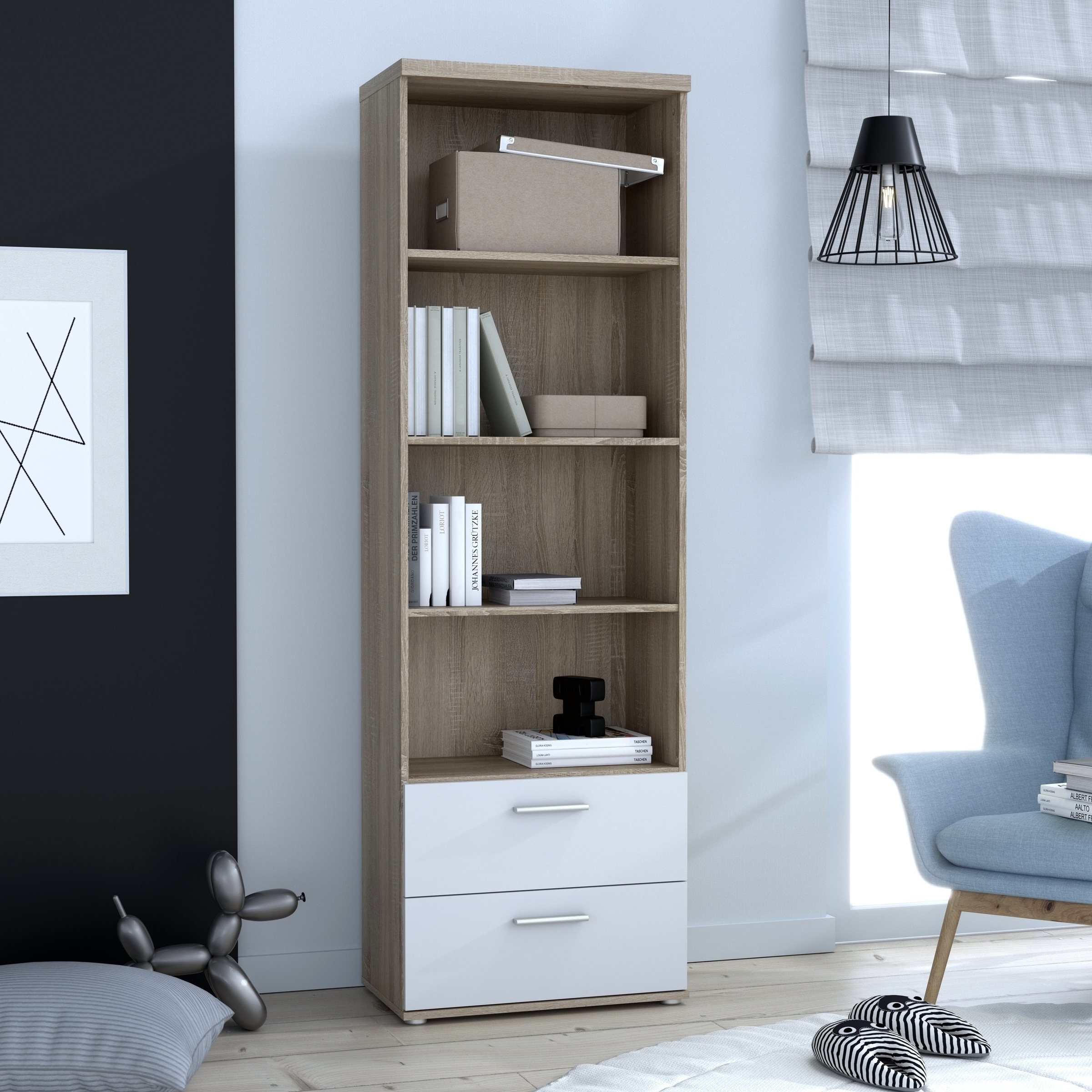 Die Kombination aus Sonoma Eiche und Weiß fügt sich stilvoll in moderne Wohnkonzepte ein.