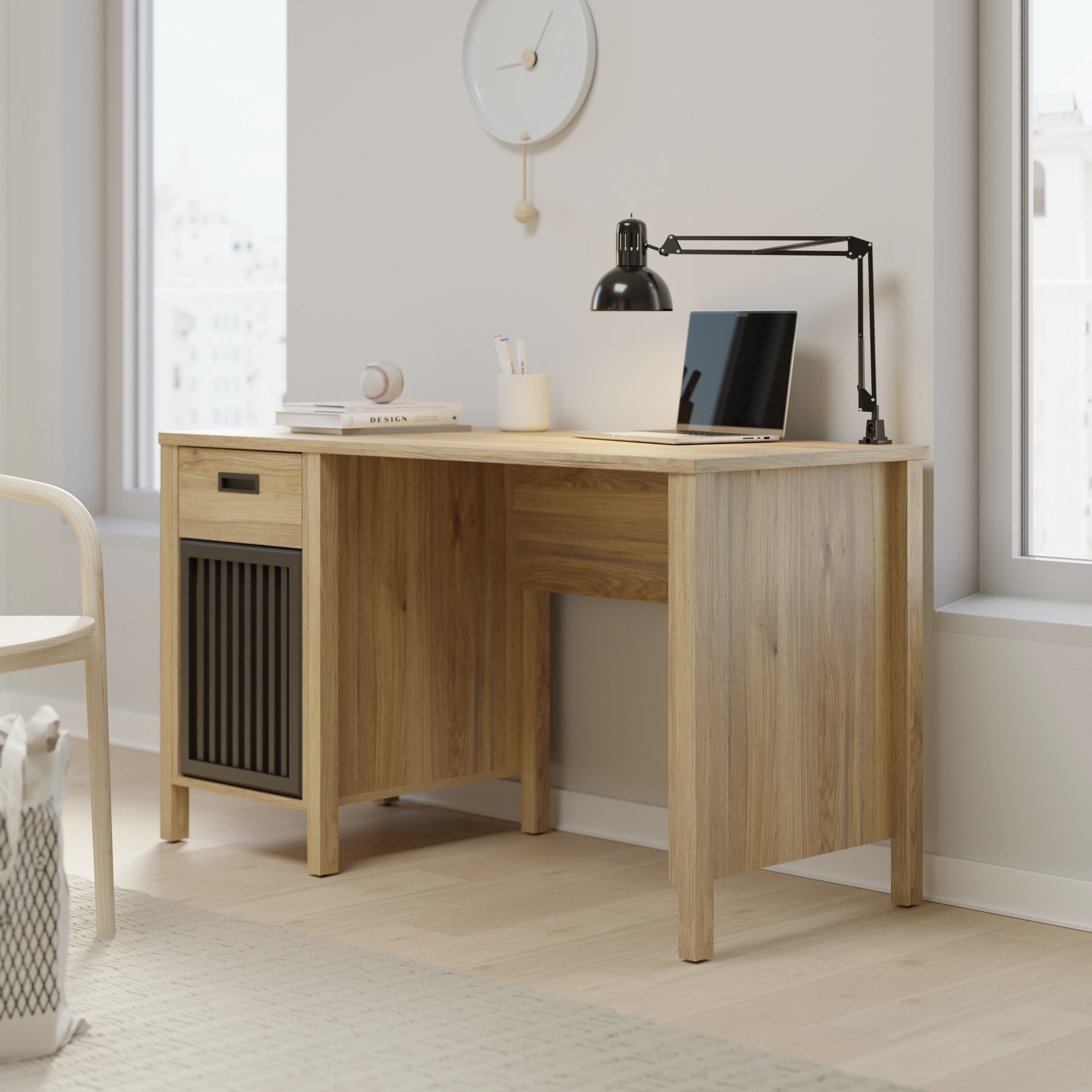 Die Garderobe verfügt über insgesamt zwei Drehtüren sowie eine Schiebetür, die für eine einfache Handhabung sorgen. Im Inneren bietet die >JYTANA< zahlreiche Ablagemöglichkeiten, darunter sechs kleine Einlegeböden, eine große Ablagefläche und eine praktische Kleiderstange. Damit eignet sich die Garderobe nicht nur für die Aufbewahrung von Kleidung, sondern auch für Accessoires und andere Gegenstände. Die Rückwand besteht aus einer lackierten HDF-Platte, die für Stabilität sorgt und das Gesamtbild abrundet. Die Füße aus Mauvella Eiche und die Metallgriffe setzen zusätzlich Akzente und machen die Garderobe zu einem echten Hingucker.