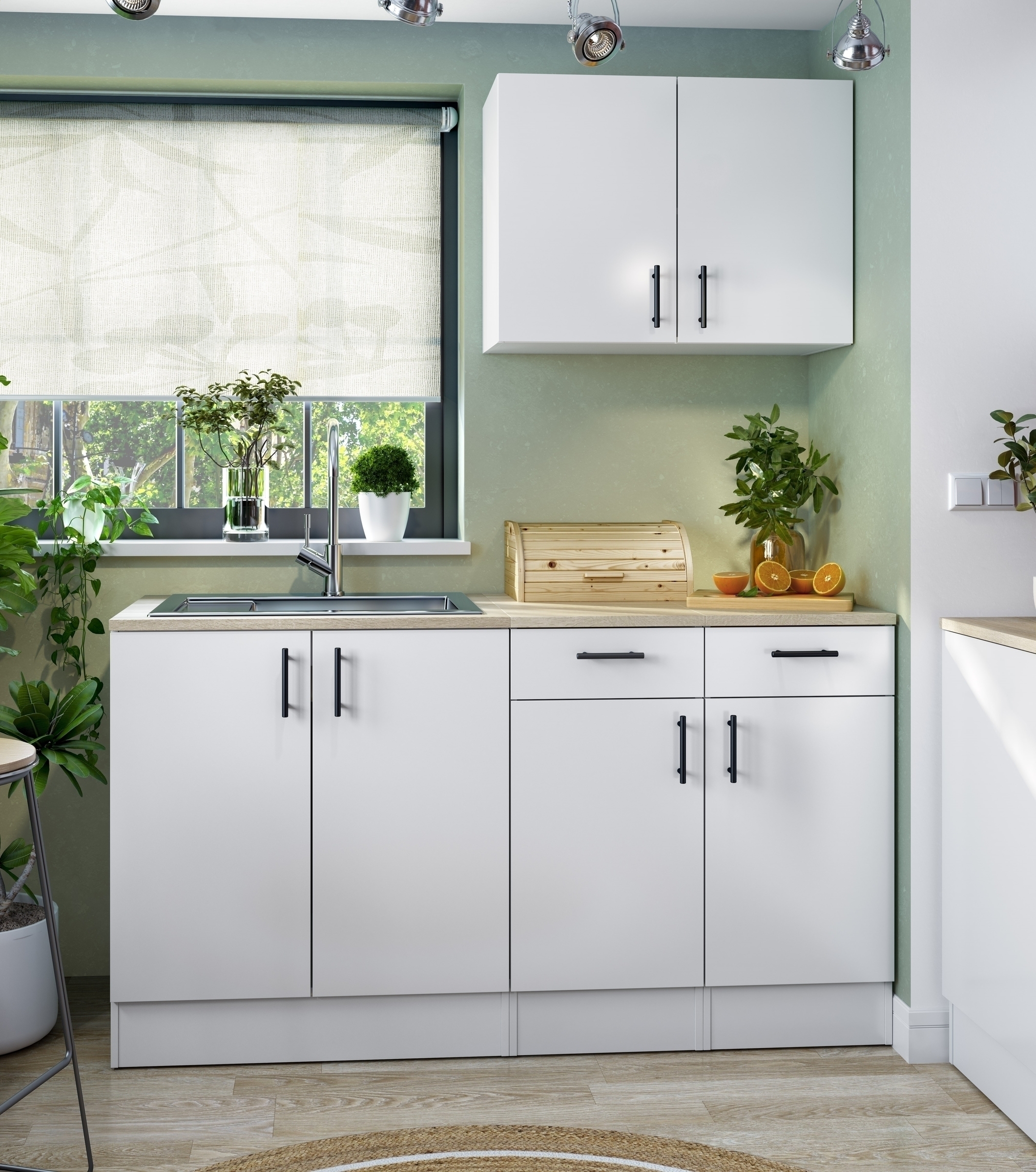 [Set Zusammensetzung] => Hängeschrank Ref. 001023B (80x59x34 cm B/H/T), Hängeschrank Ref. 001021B (60x59x34 cm B/H/T), Unterschrank Ref. 0F1013B (60x90x60 B/H/T), Unterschrank Ref. 0F1012B (40x90x60 B/H/T)
