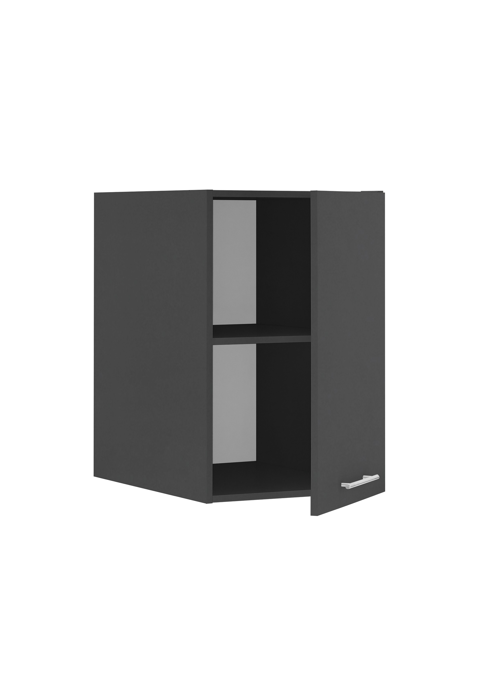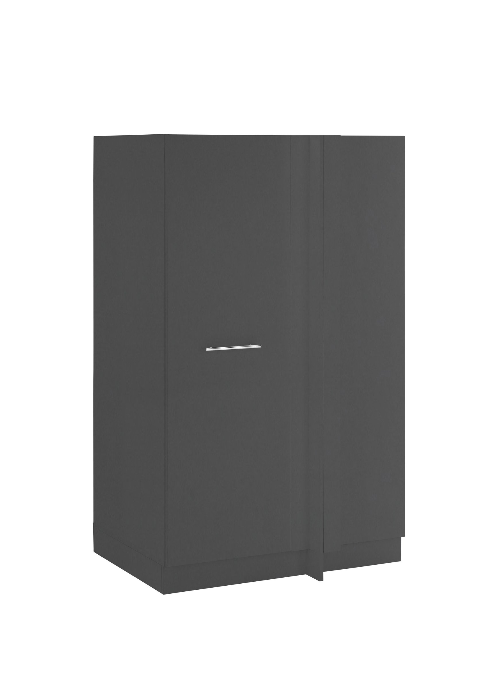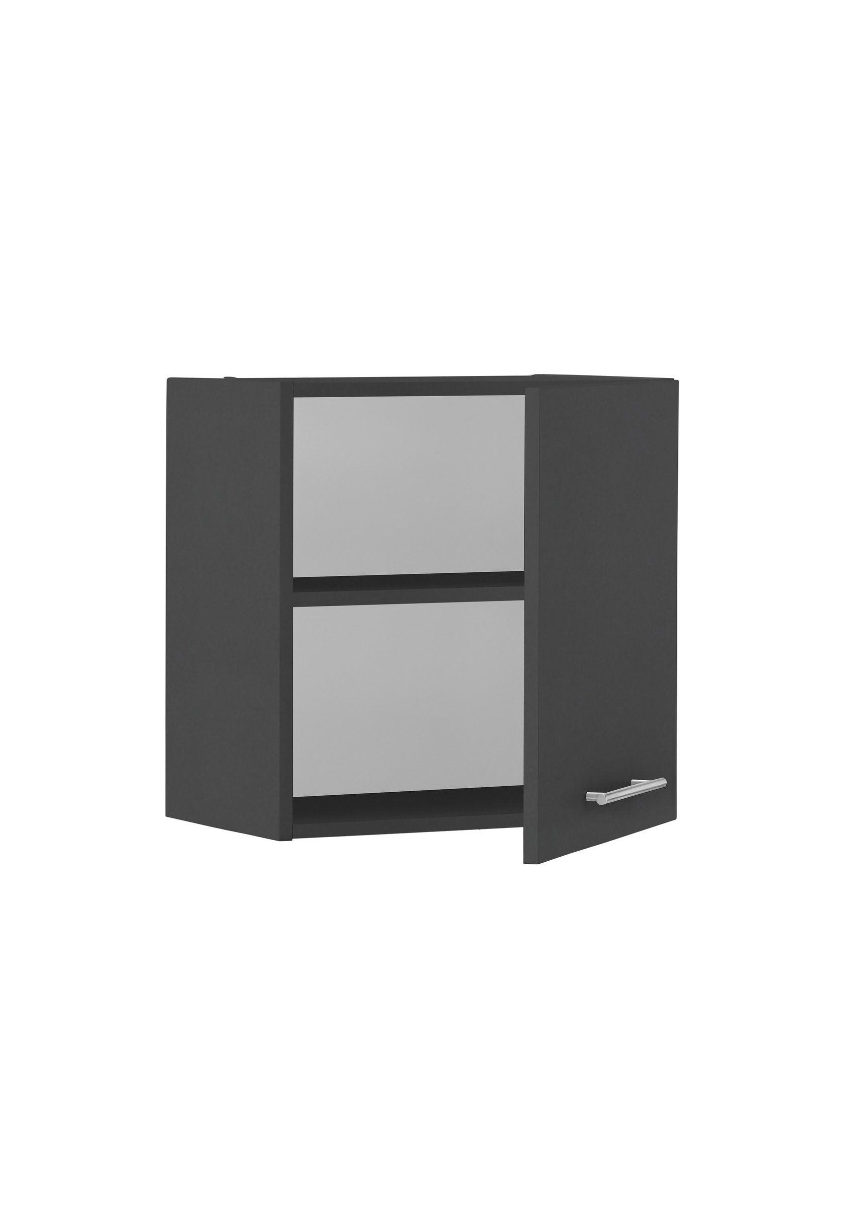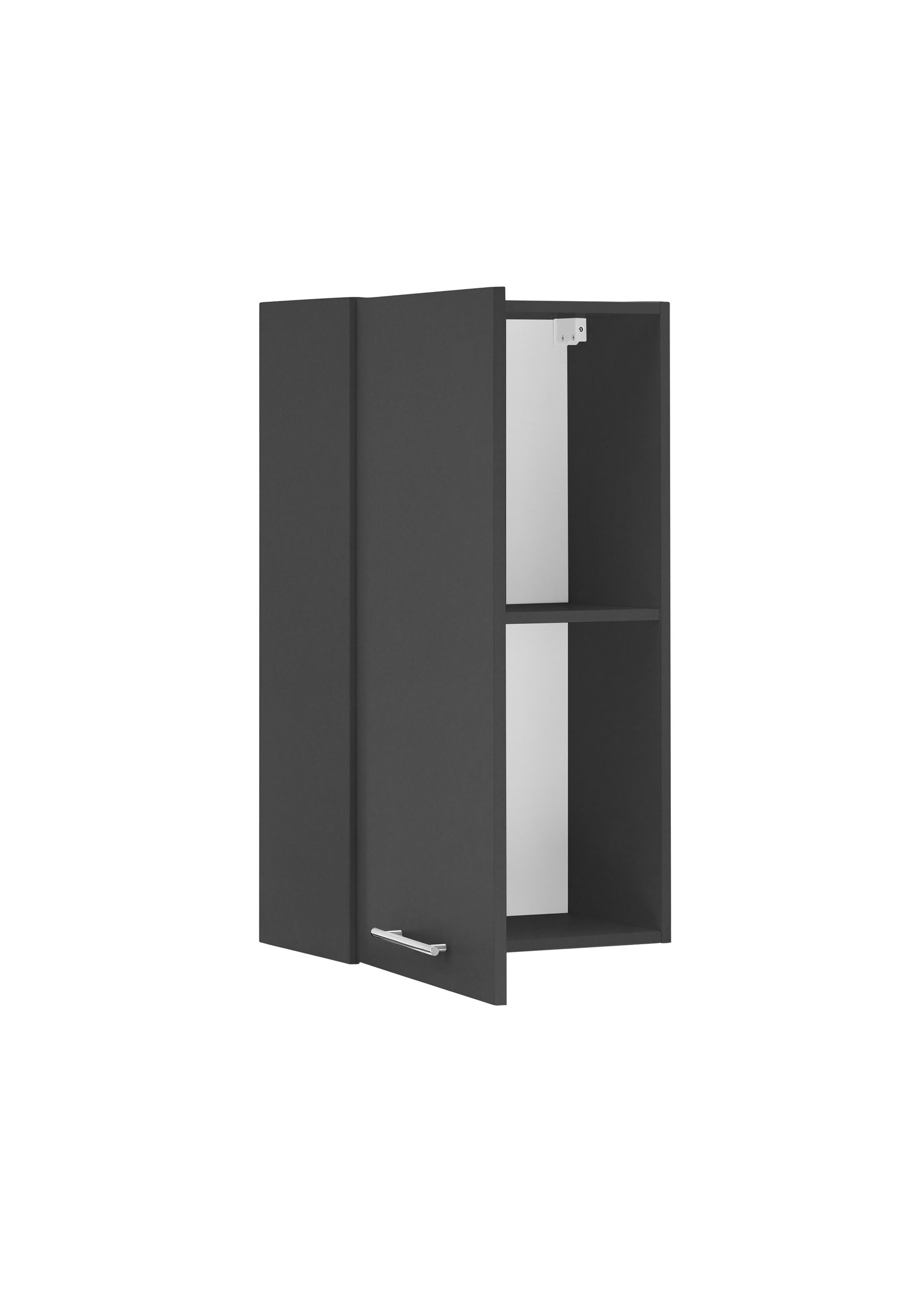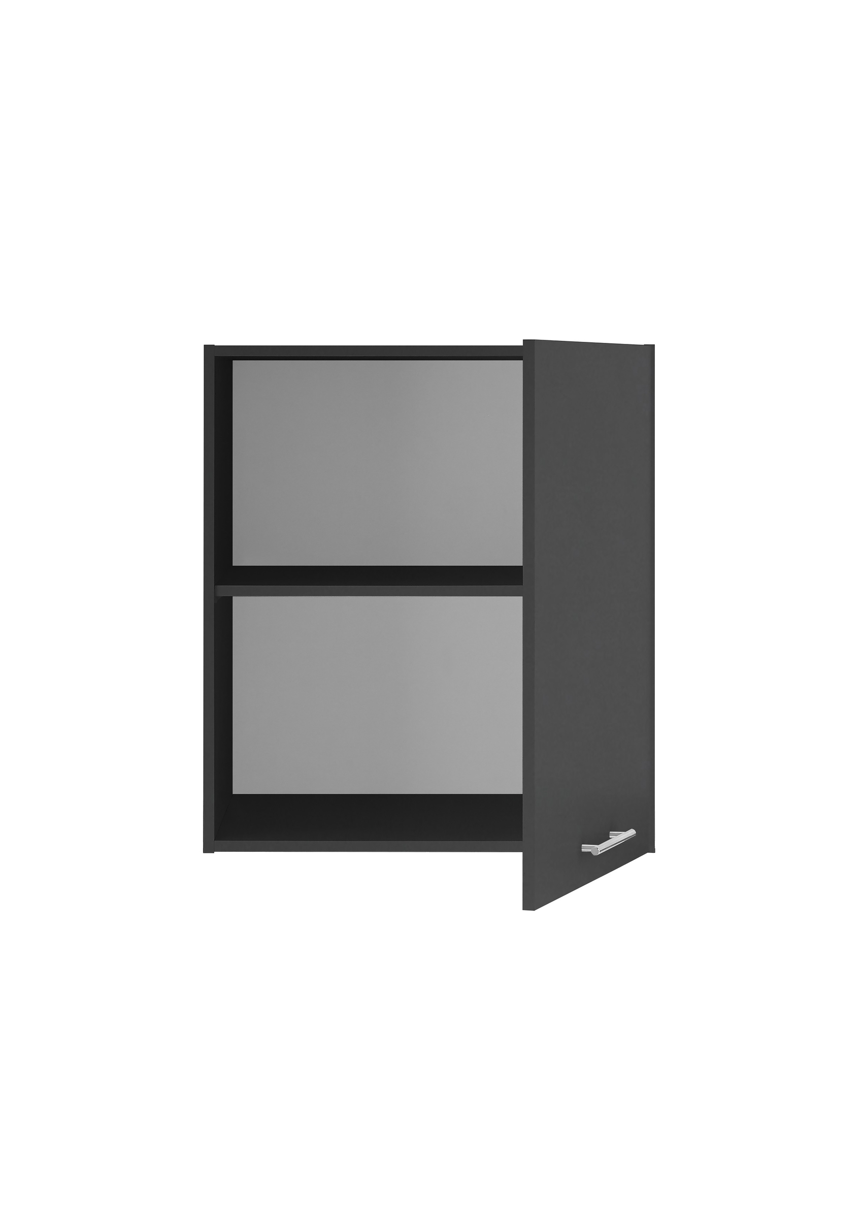 Die matte, anthrazitfarbene Front mit silberfarbenen Stangengriffen aus Metall sorgt für eine zeitgemäße Optik, die besonders gut mit klaren Linien und reduzierten Küchenstilen harmoniert. Dank beidseitig montierbarem Türanschlag lässt sich der Schrank flexibel an Ihre Raumsituation anpassen, ob als Solitär oder nahtlos eingebunden in eine Küchenzeile.