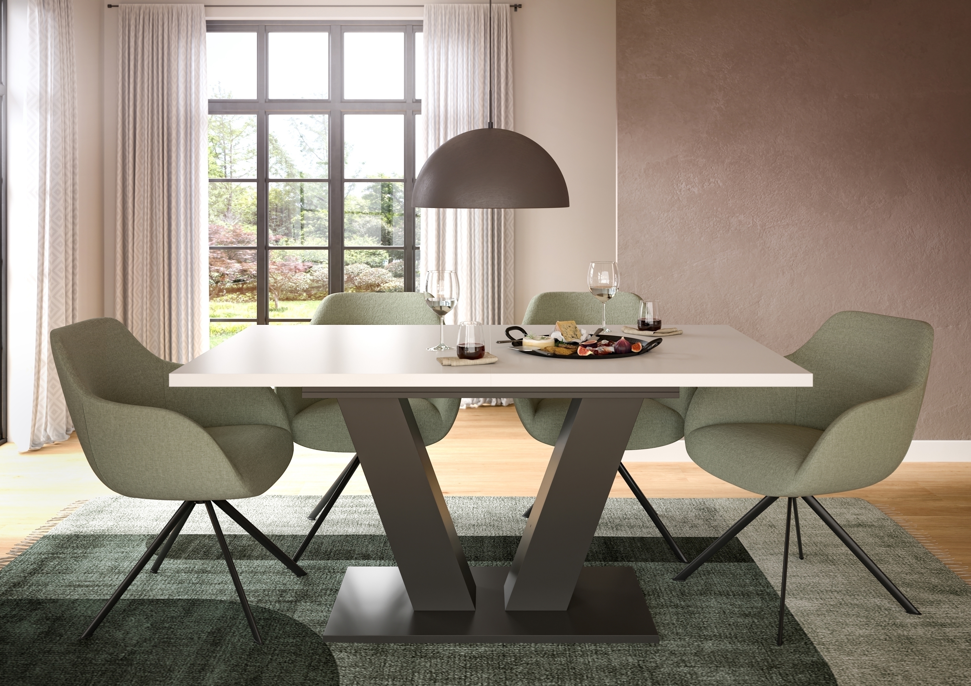 Das trendige V-Fußgestell in Grau verleiht deinem Esszimmer einen zeitgemäßen und eleganten Look.