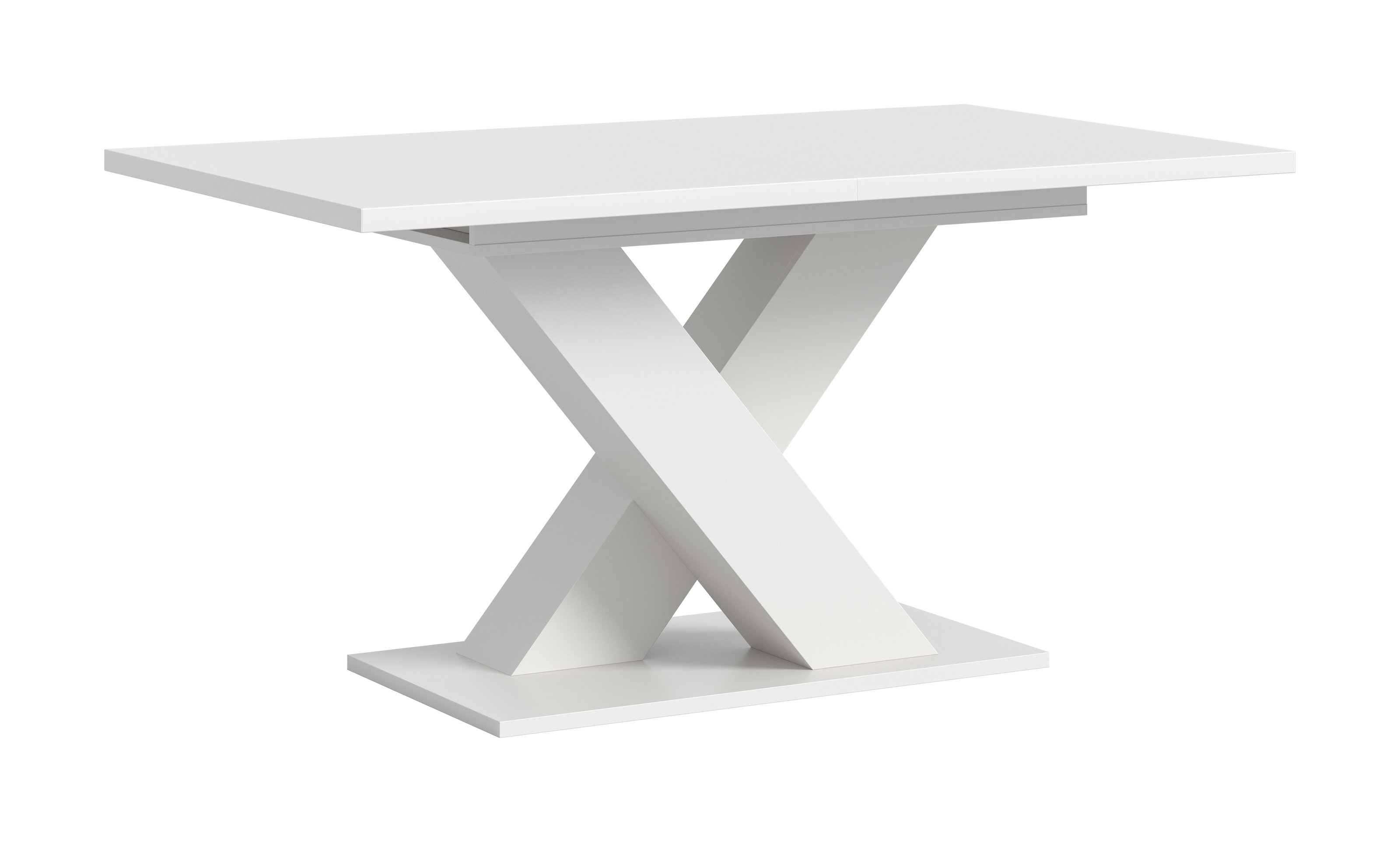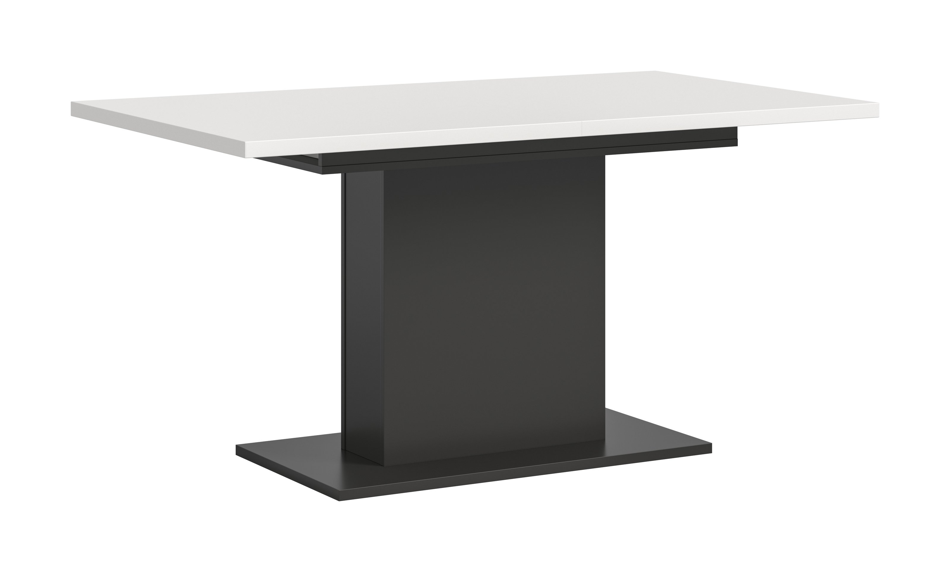 Die Tischplatte und der Korpus bestehen aus Spanplatte mit melaminbeschichteter Oberfläche. Diese Ausführung ist robust, pflegeleicht und ideal für den Alltag. Eine umlaufende ABS-Kante an Tischplatte und Einlegeplatte sorgt zusätzlich für eine saubere Kantenoptik.