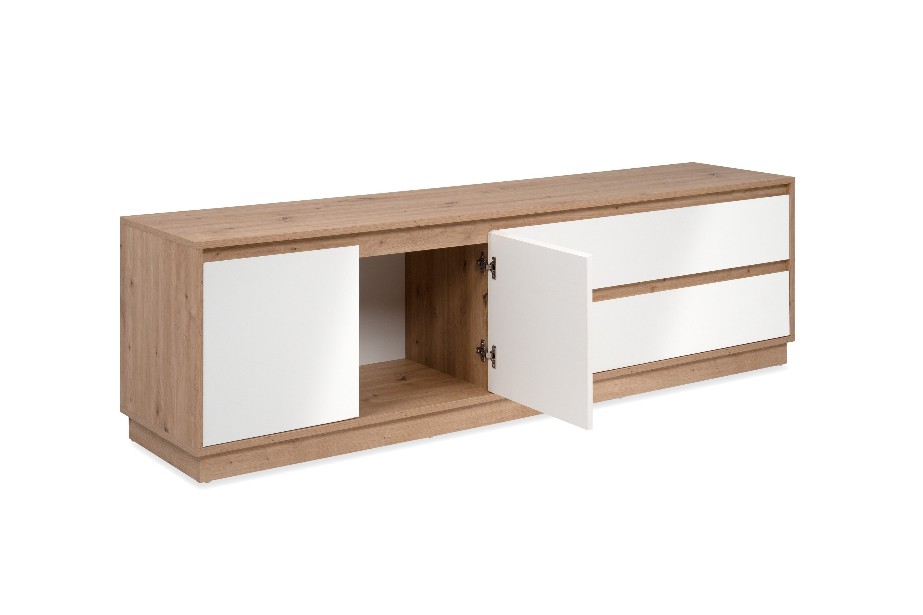 [cSuchbegriffe] => Lowboard 175 cm modern Dekor Artisan Oak Weiß HGL Holzwerkstoff grifflos Schrägkante 2 Türen 2 Schubladen pflegeleicht ABS-Kanten Sockelfüße Wohnzimmer Jugendzimmer Stauraum Media Möbel