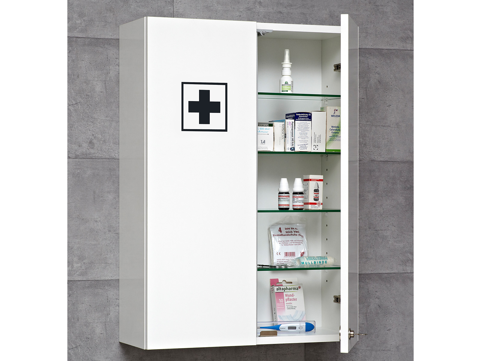 [cName] => Medizinschrank >Adan< in Weiß aus Glas - 50x70x20cm (BxHxT)