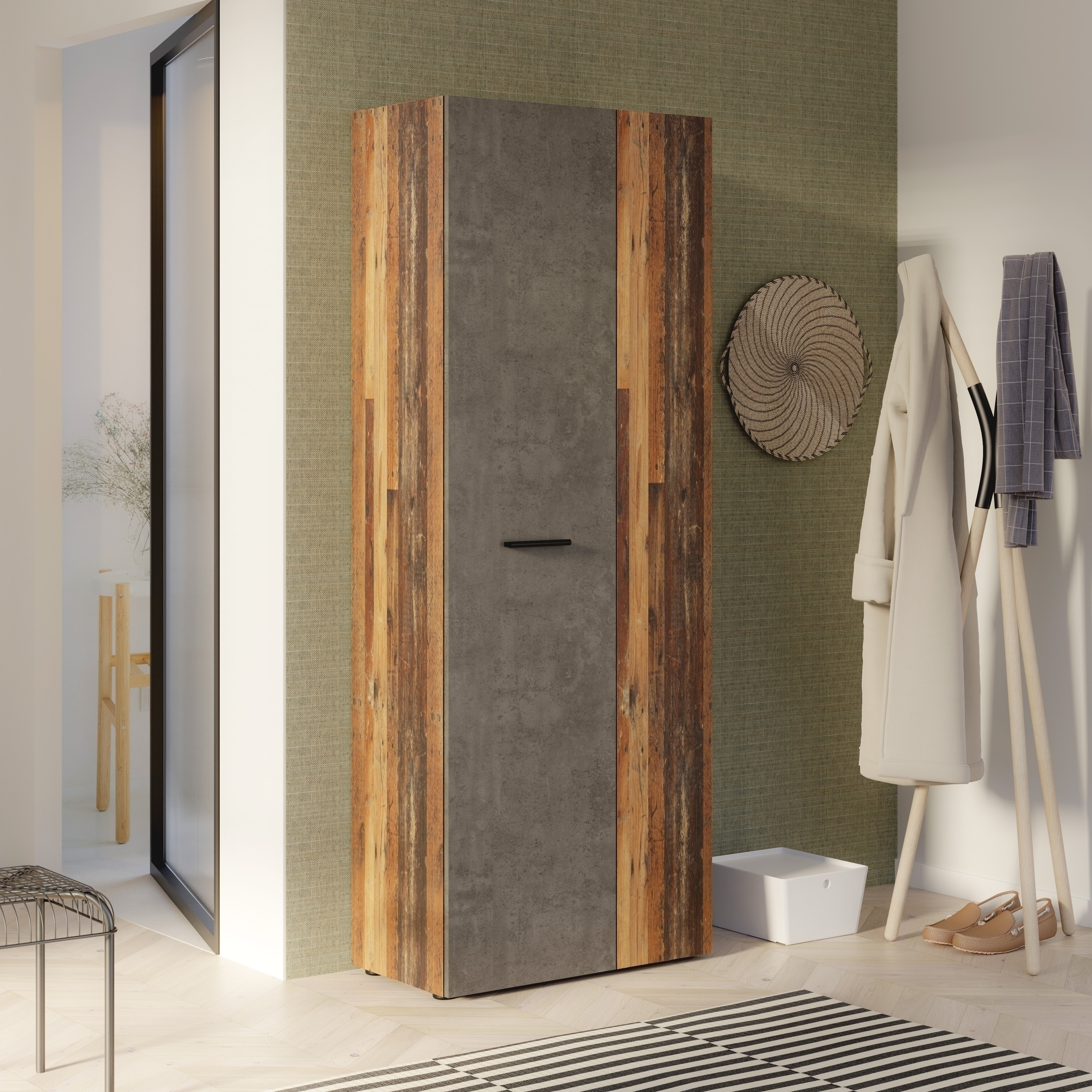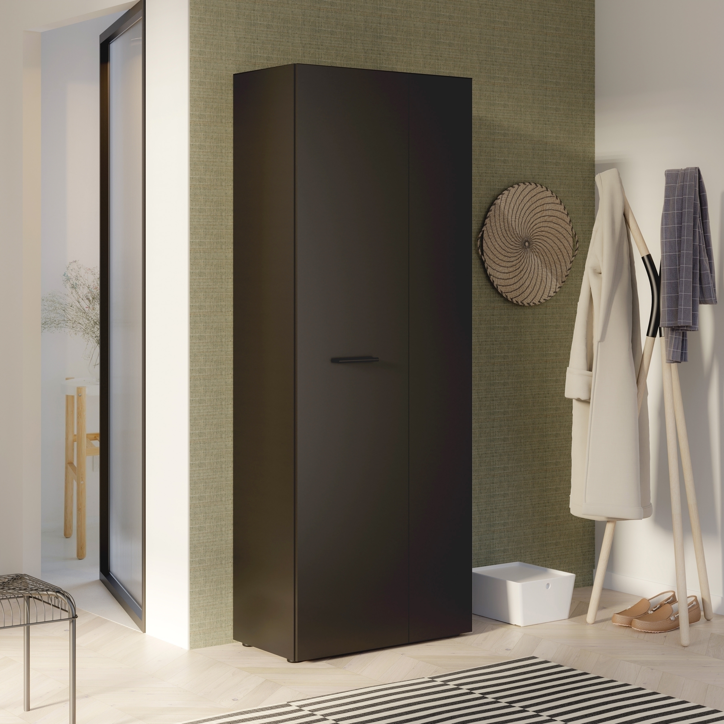 Mit 68,7 x 181,1 x 36,5 cm nutzt der Schrank den vorhandenen Raum optimal für übersichtlichen Stauraum.