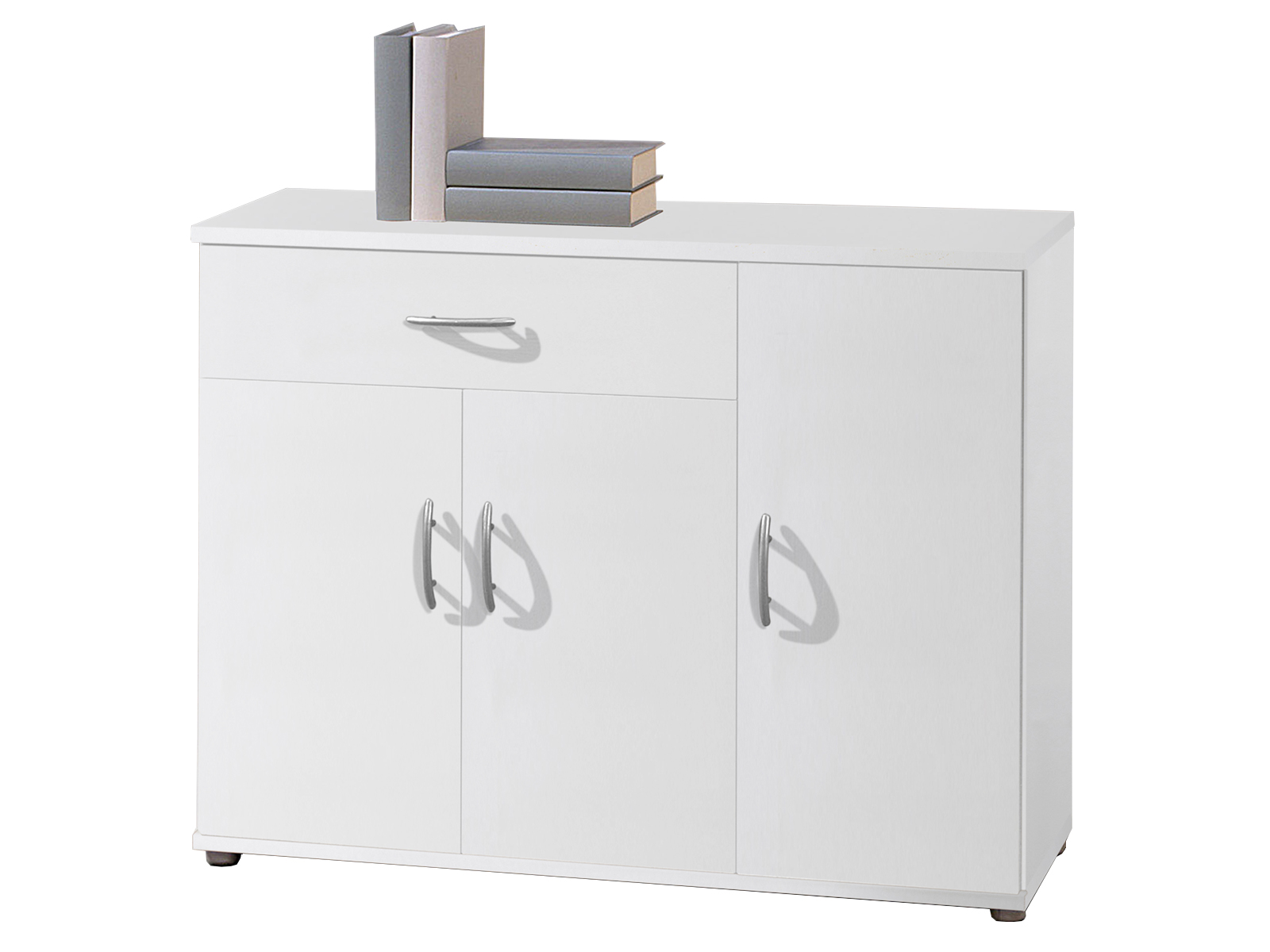 [metaDescription] => Sideboard aus Spanplatte in weiß mit 4 Türen, 3 Einlegeböden und 1 Schubkasten Breite 118 cm, Höhe 70 cm, Tiefe 30 cm Jetzt versandkostenfrei bei möbelando
