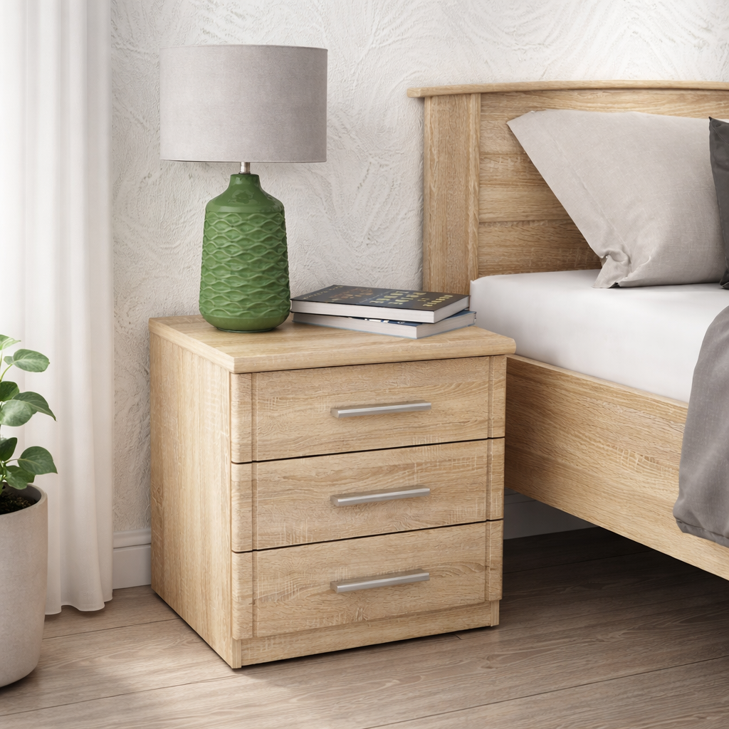 Nachtkommode >GLORIA< in Sonoma Eiche Dekor – Schlafzimmerkommode mit 3 Schubladen & praktischem Stauraum