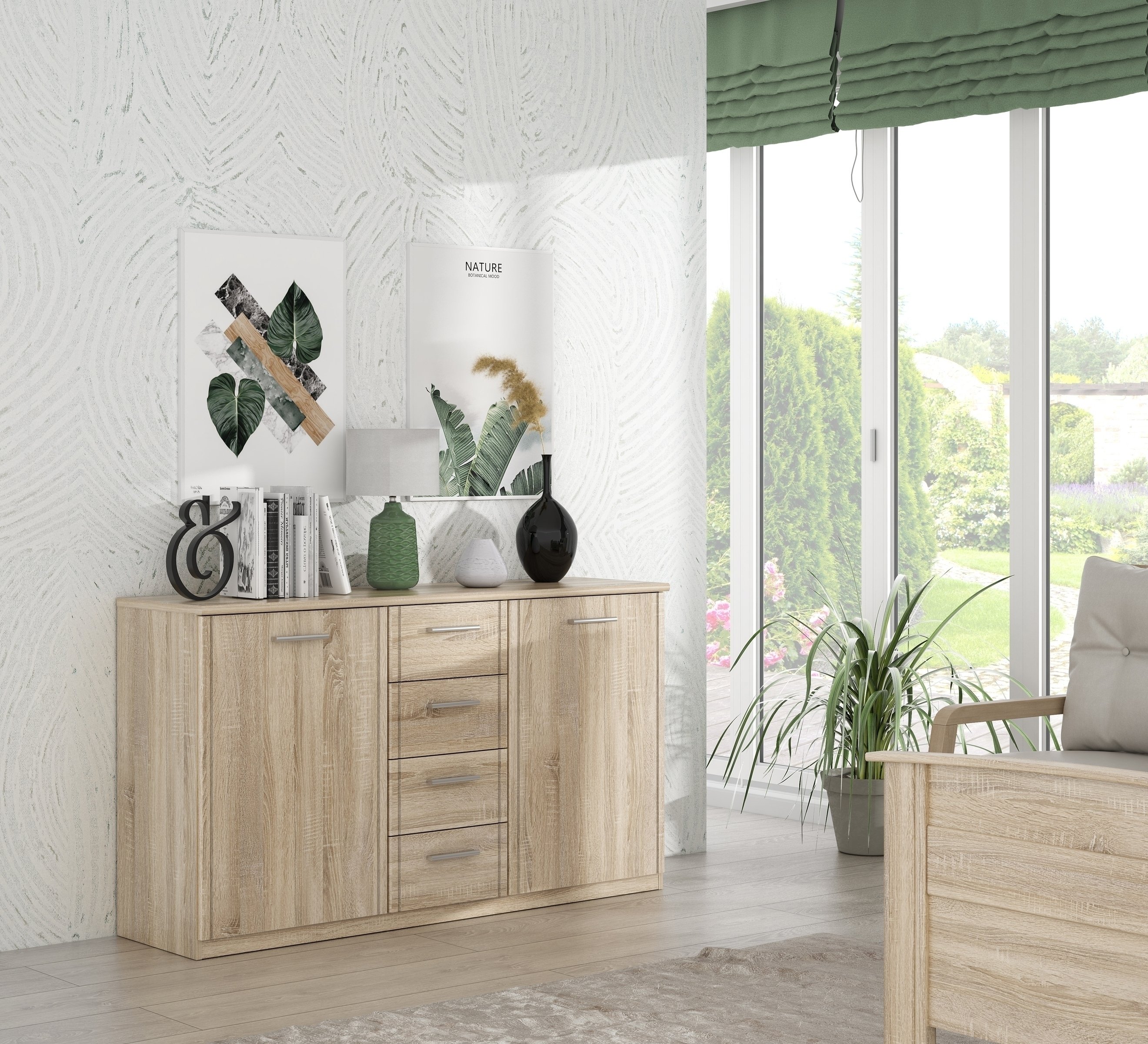 [1] => Sideboard-GLORIA-in-Sonoma-Eiche-Dekor-2-Tueren-4-Schubladen-147x843x41cm-BxHxT