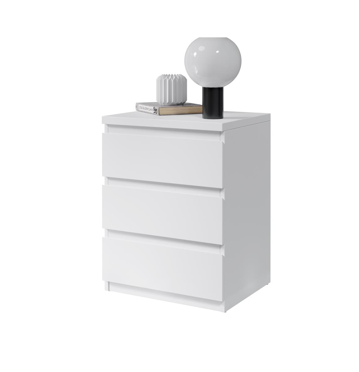 [metaDescription] => Nachttisch mit drei Schubladen in Weiß - Moderner Nachtschrank mit Stauraum für Ihr Boxspringbett - 45 x 61 x 38 cm (B/H/T)