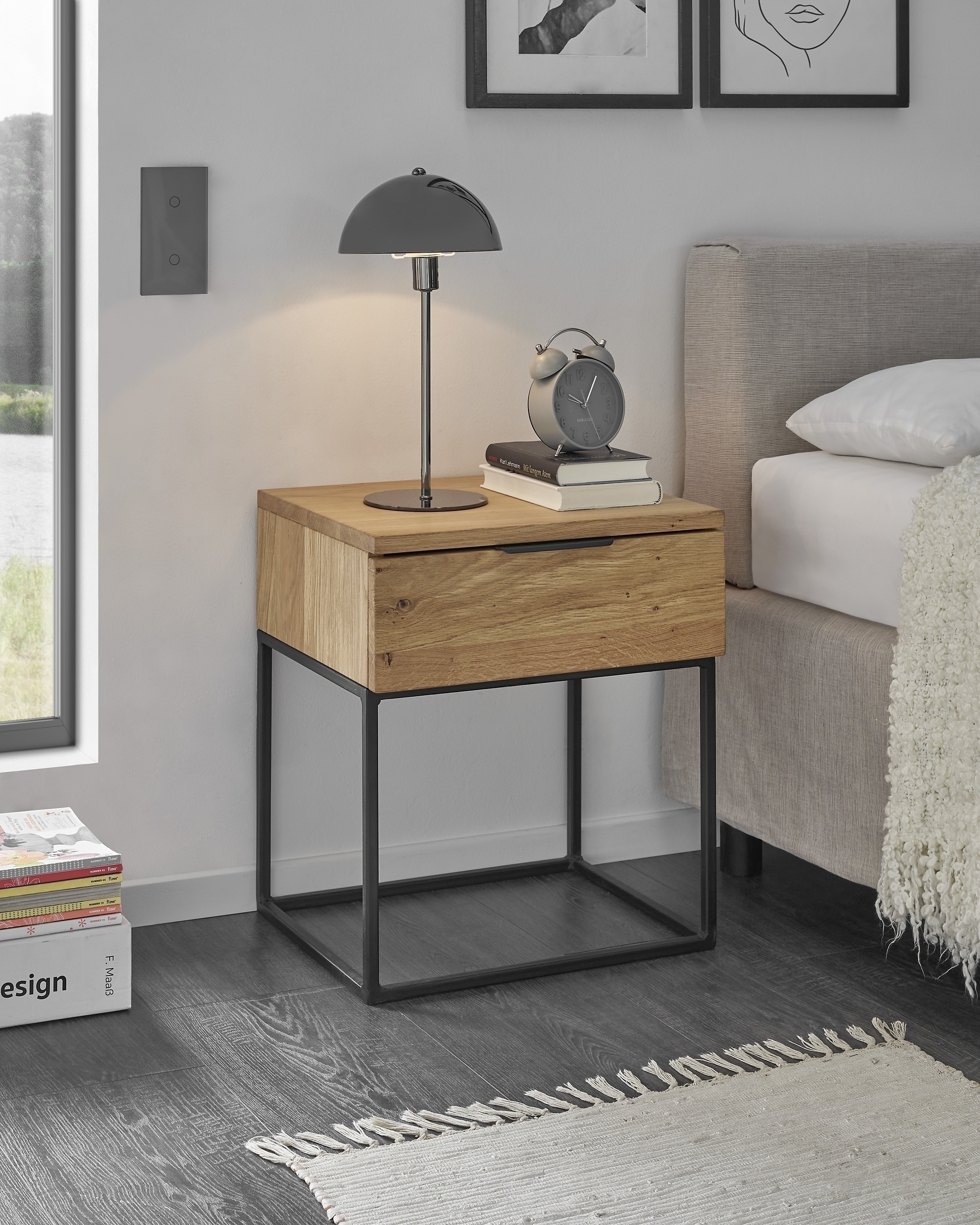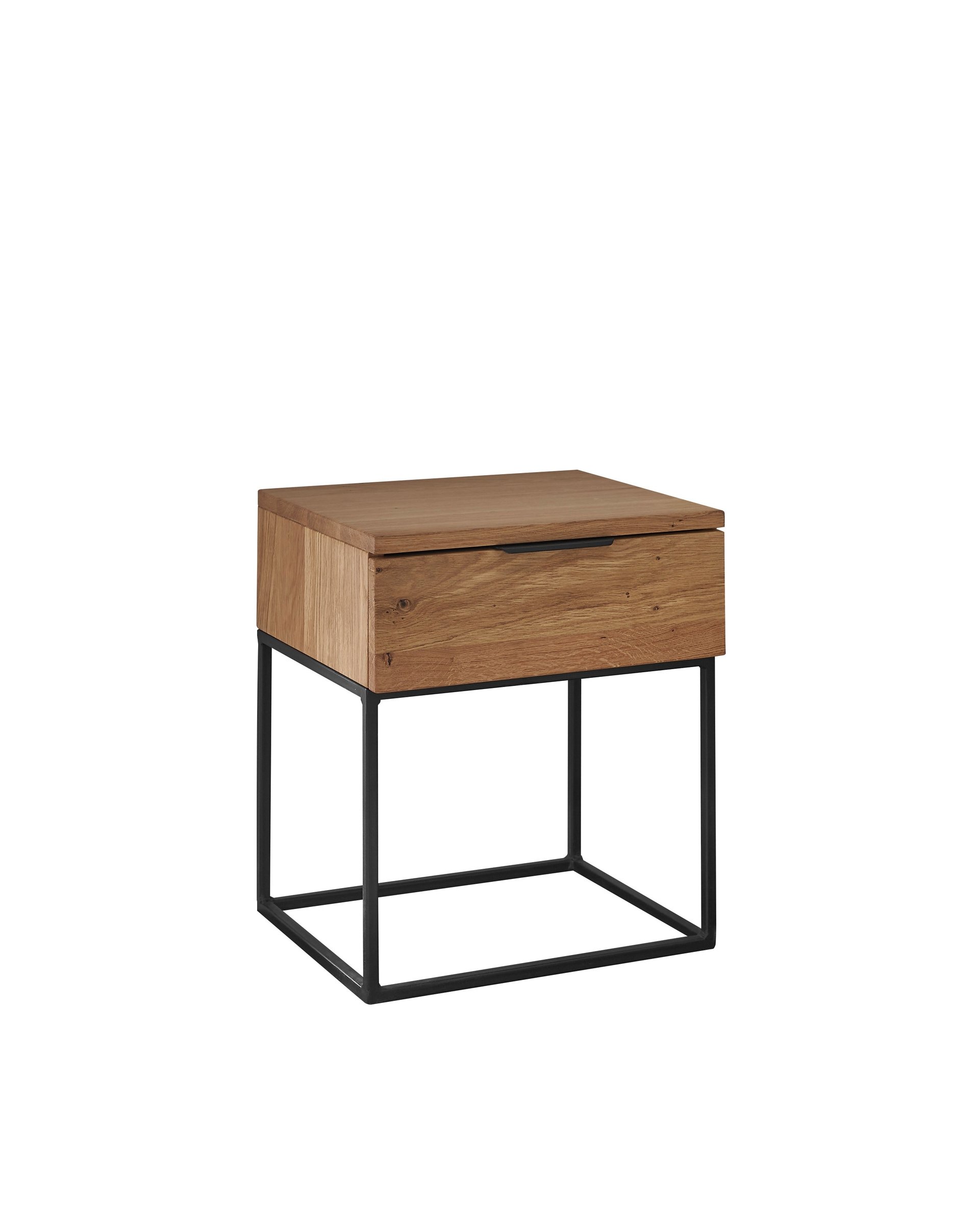 Nachtkommode Seppo – Nachtkommode aus Massivholz mit Schublade und Metallgestell