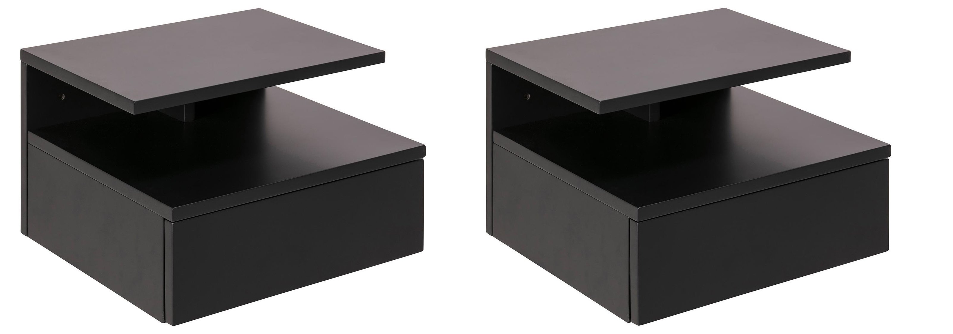Durch die hängende Montage wirkt der Raum optisch leichter und aufgeräumter, während gleichzeitig wertvolle Bodenfläche frei bleibt. Das 2er-Set bietet eine praktische und zugleich stilvolle Ergänzung für symmetrische Einrichtungskonzepte im Schlafzimmer.