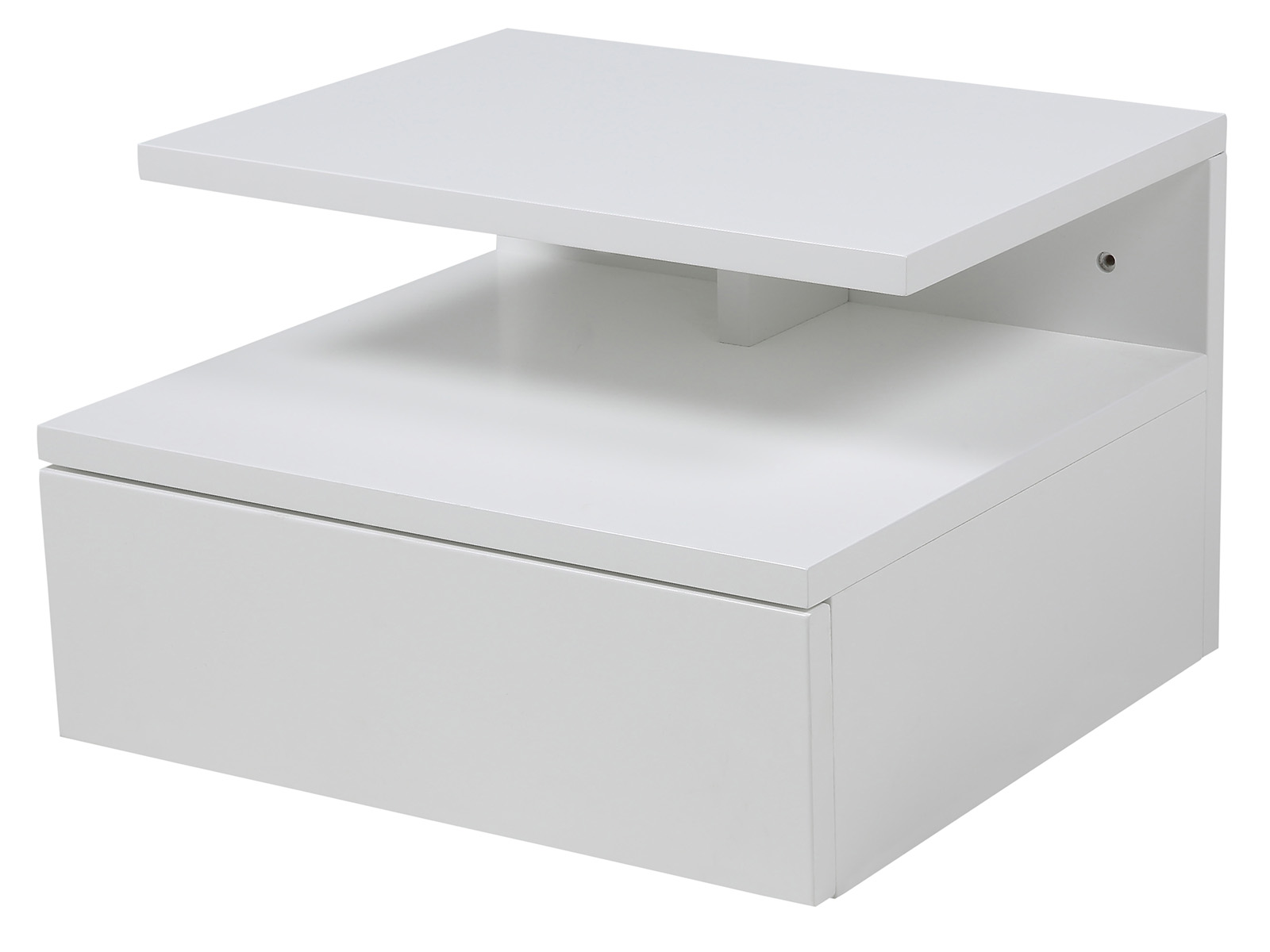 Nachttisch >Randers< in Weiß – Moderner Wandnachttisch mit Schubkasten und Ablageflächen