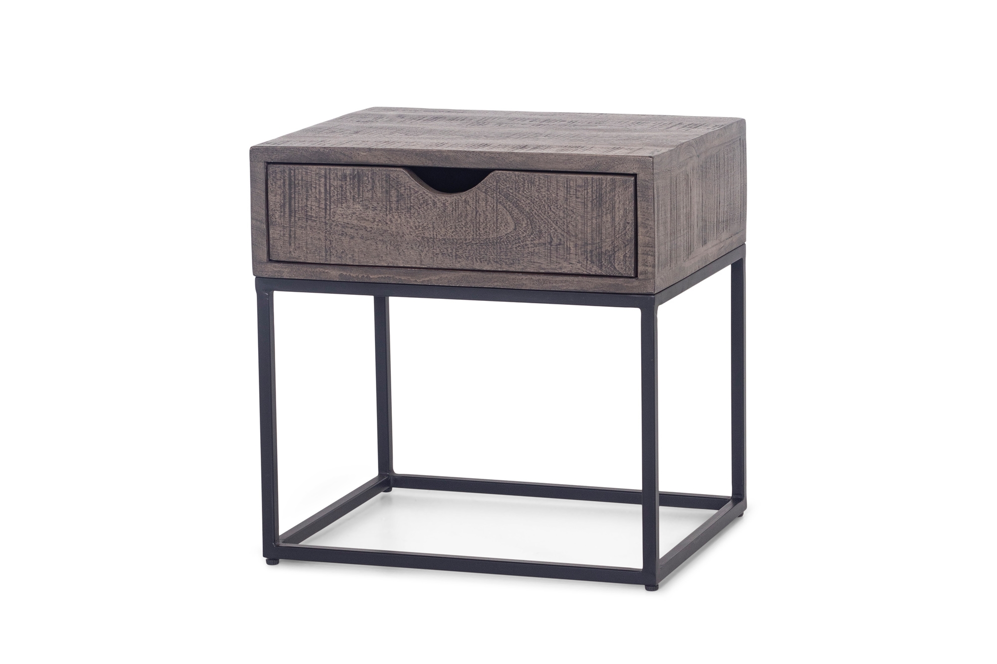Industrial Nachttisch SAMUEL – funktionale Nachtkommode aus Akazie