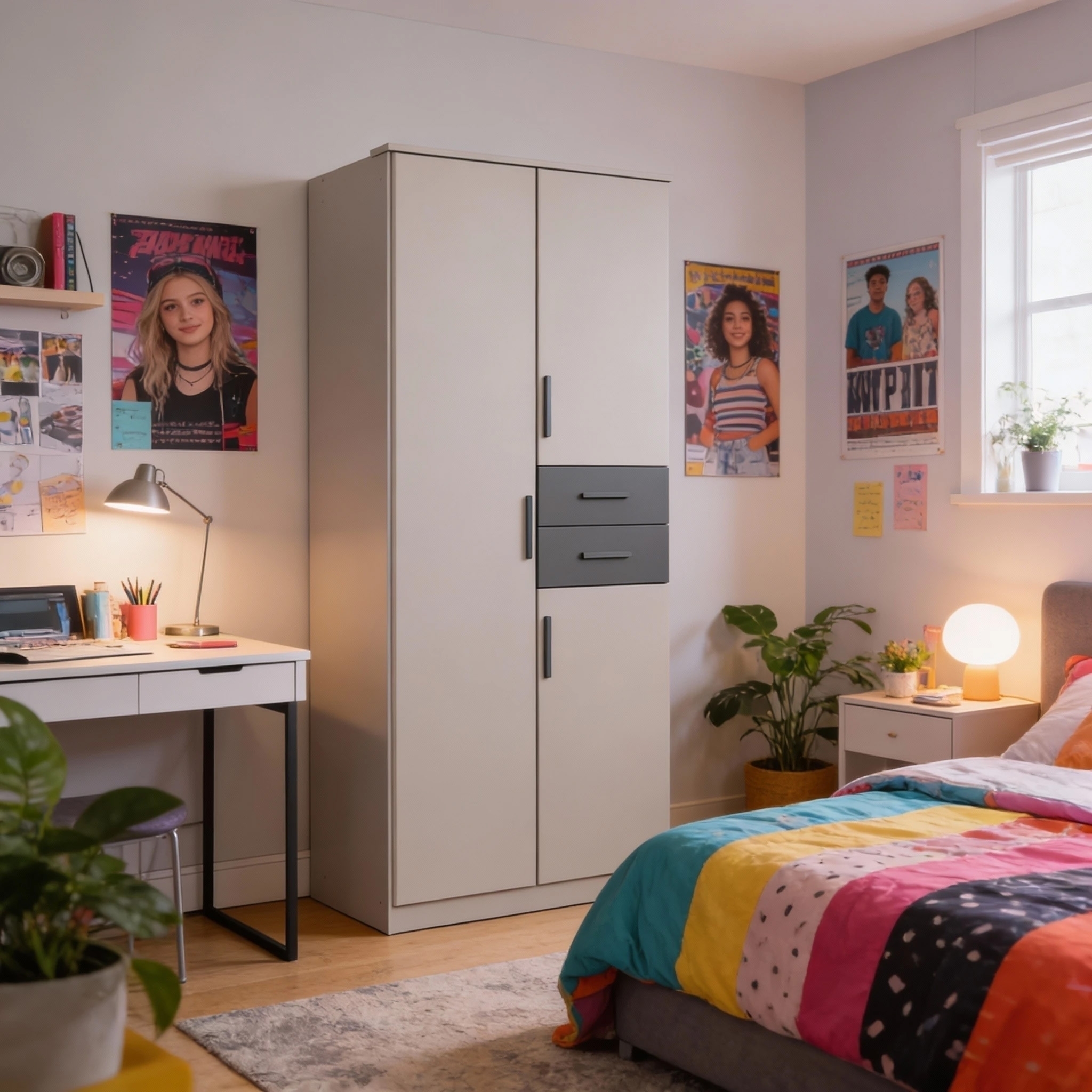 [Bullet-Point 4] => Robuste Holzwerkstoff-Spanplatte – pflegeleichtes, langlebiges Material ideal für den täglichen Einsatz im Jugend- und Kinderzimmer.