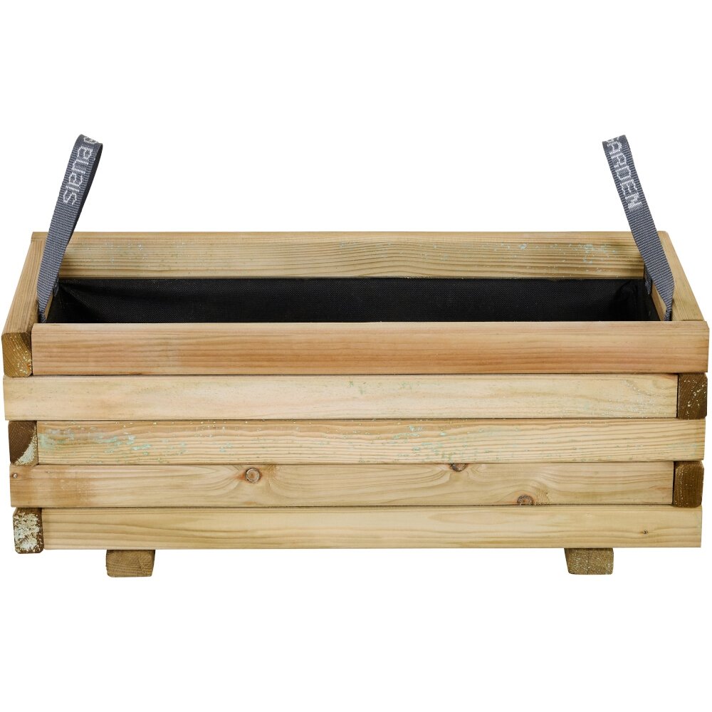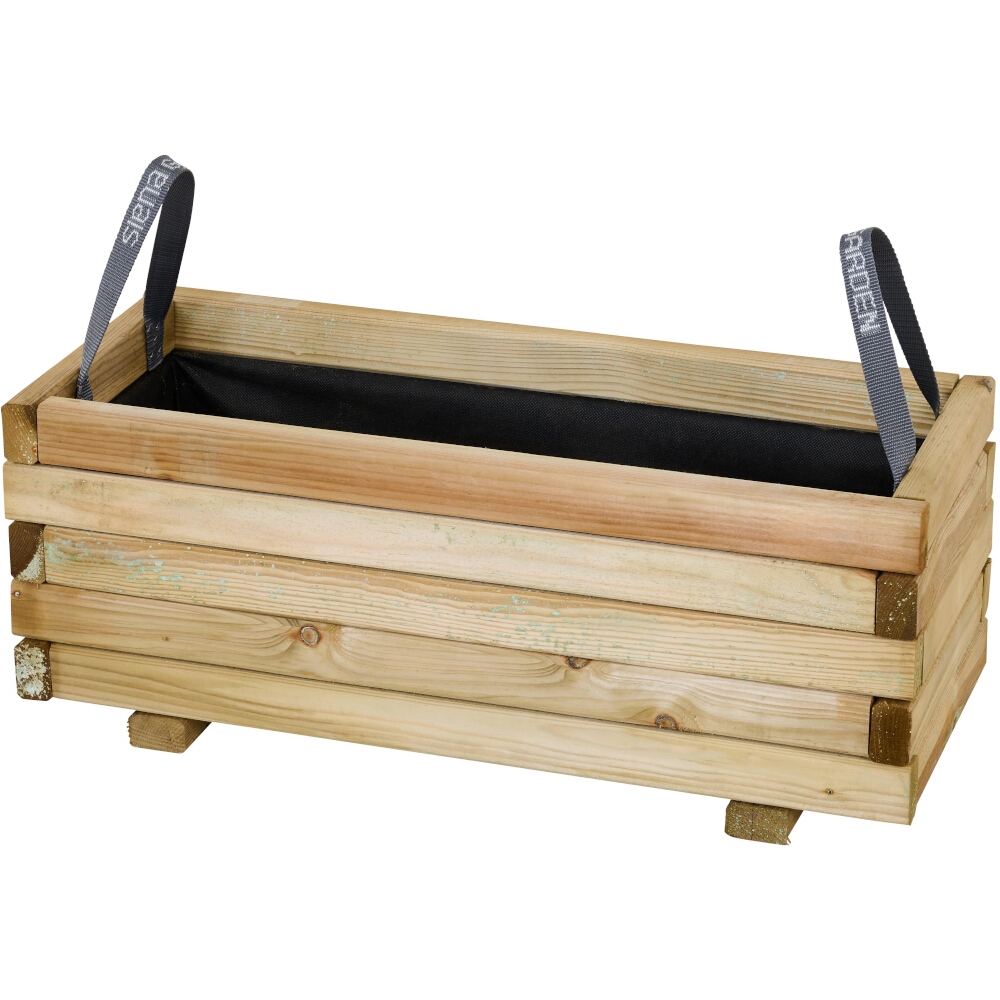 Gefertigt aus Kiefernholz aus nachhaltiger Forstwirtschaft (FSC® 100%) vereint der TAUNUS Pflanzkübel ein natürliches, rustikales Design mit verantwortungsbewusster Materialwahl. Zwei integrierte Trageschlaufen und das mitgelieferte Geotextil machen Handhabung und Bepflanzung besonders komfortabel.
