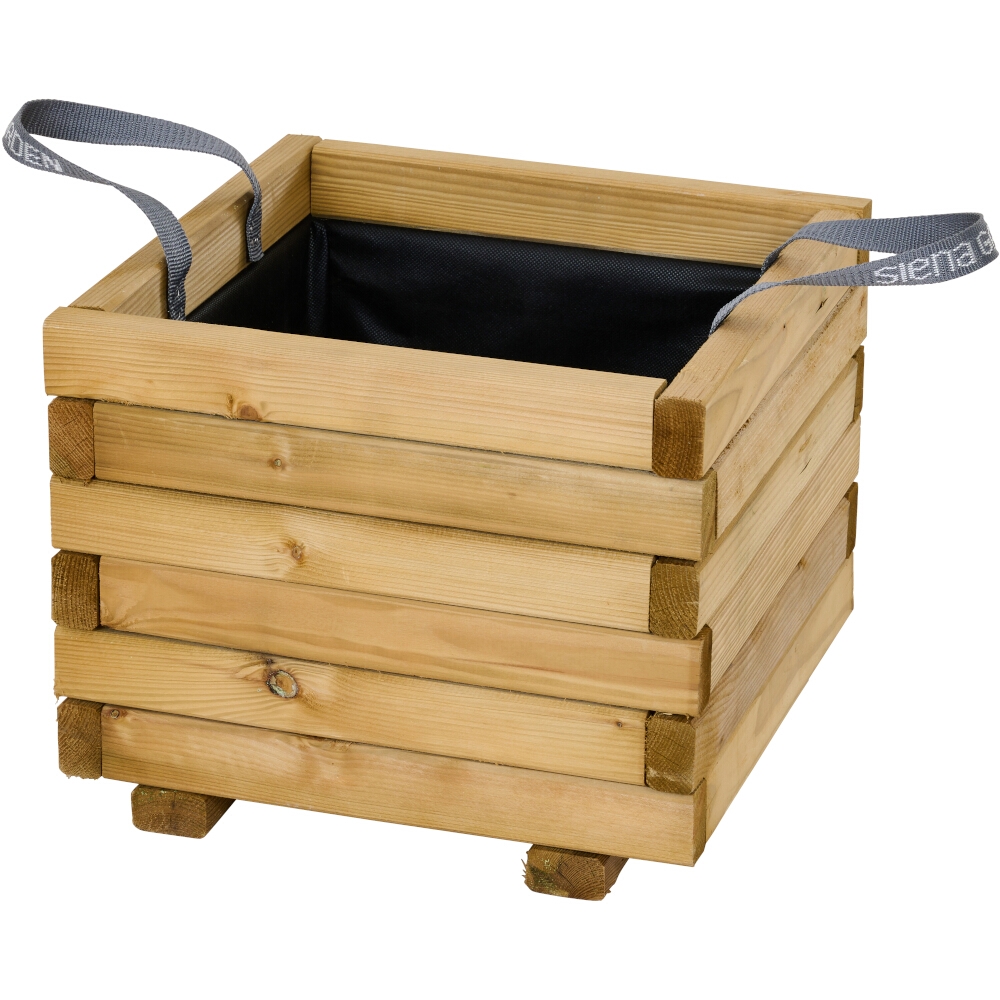 Dank der Kesseldruckimprägnierung ist der TAUNUS Pflanzkübel besonders witterungsbeständig und gegen Feuchtigkeit, Schimmel und andere Umwelteinflüsse geschützt. Praktische Trageschlaufen erleichtern das Umstellen, während das beiliegende Geotextil für eine effektive Drainage sorgt und die Erde zuverlässig im Kübel hält. Der Pflanzkübel wird montiert geliefert und ist somit direkt nach der Ankunft einsatzbereit.