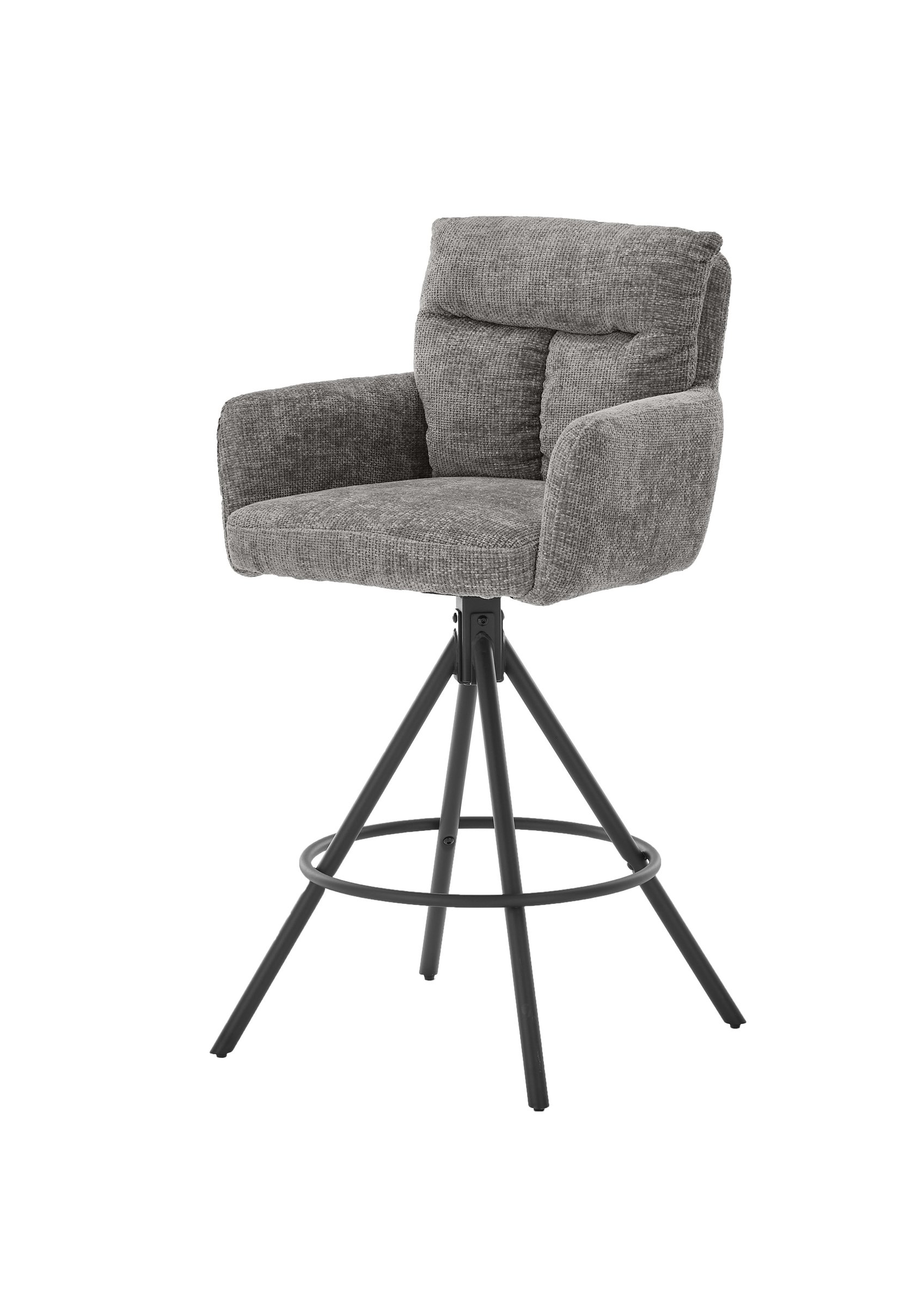 Der edle Cordbezug in Grau sorgt für eine weiche, gemütliche Haptik und eine zugleich elegante Ausstrahlung. In Kombination mit dem schwarzen Metallgestell entsteht ein moderner Look, der sich ideal in zeitgemäße Wohnkonzepte einfügt.