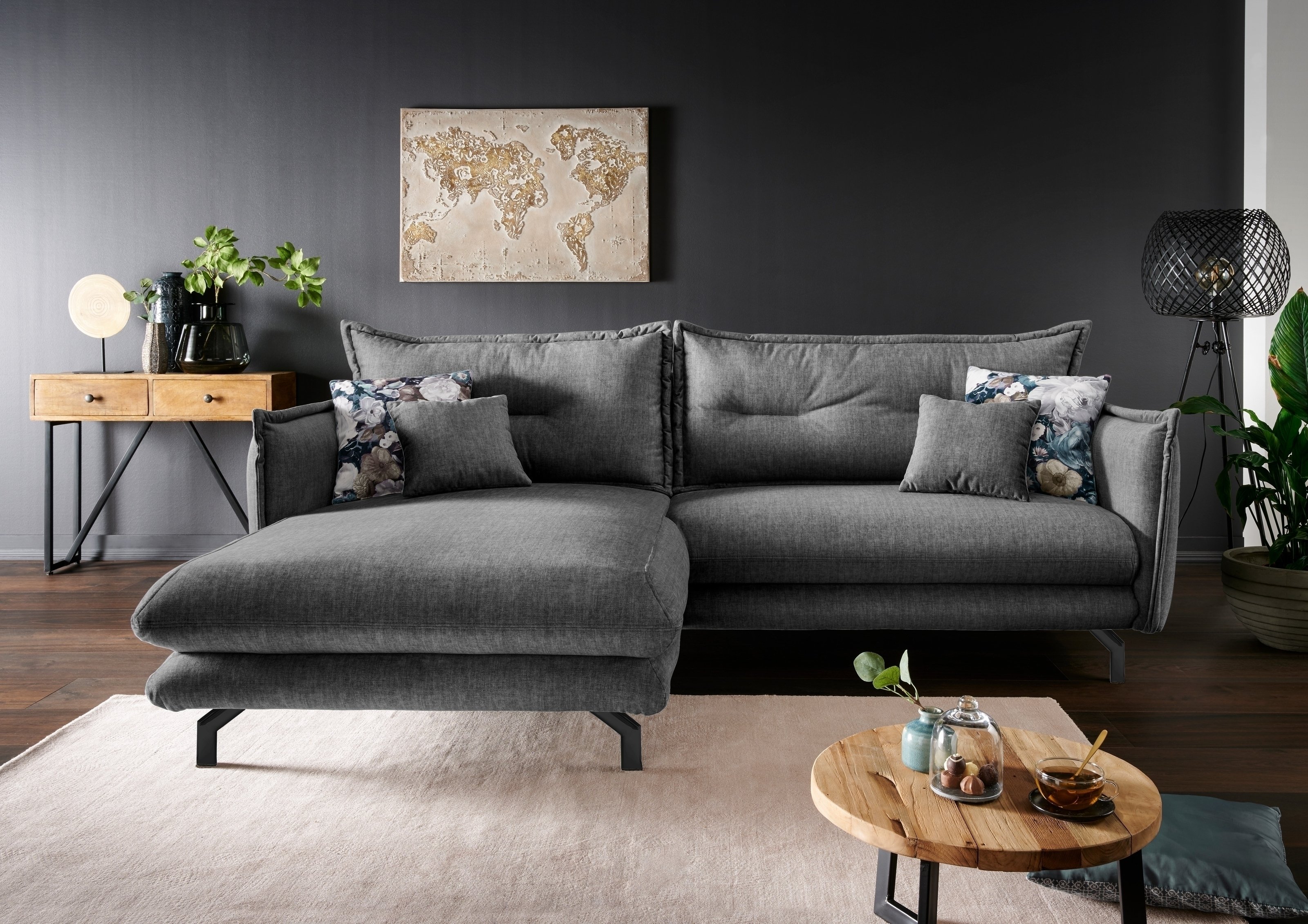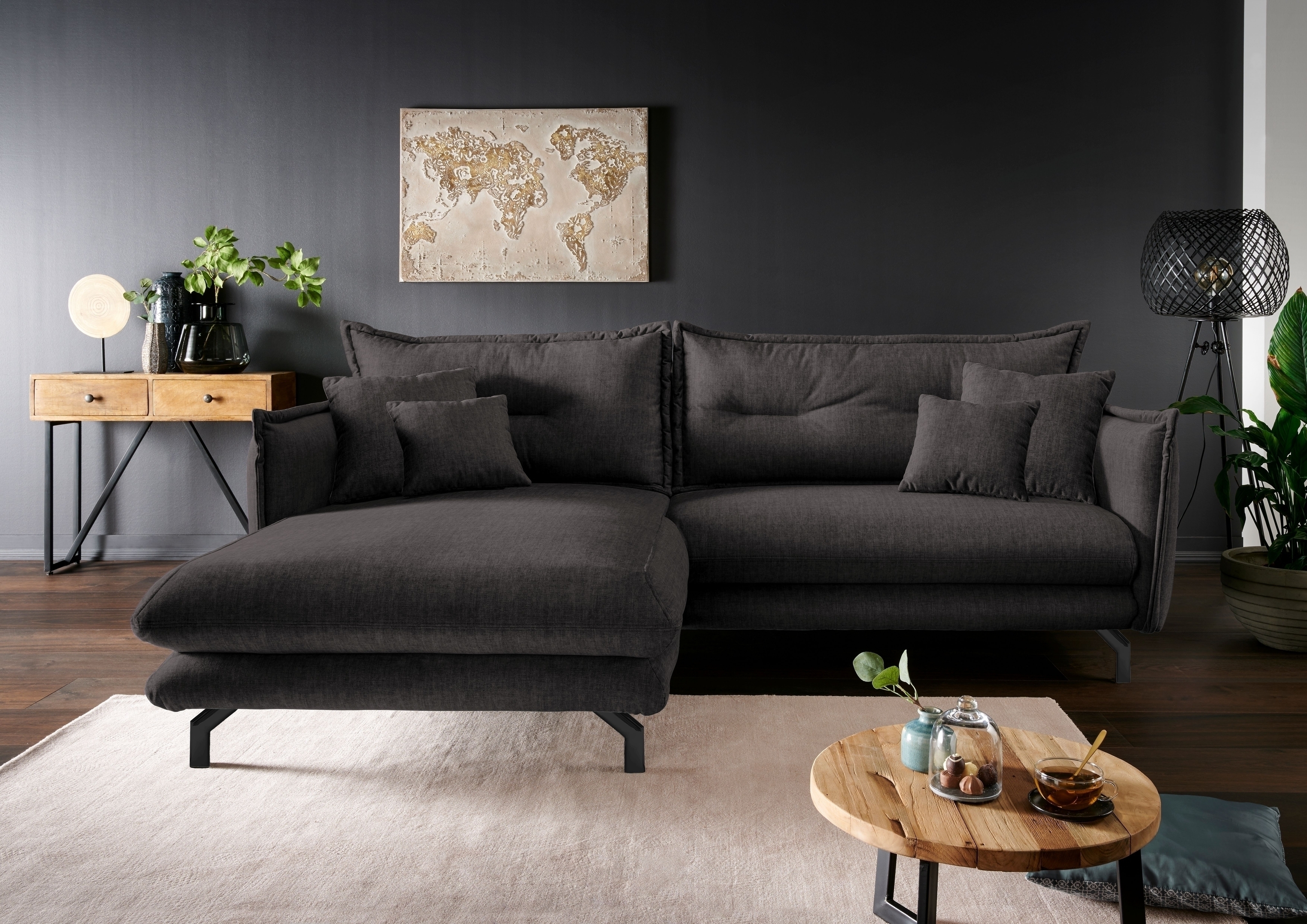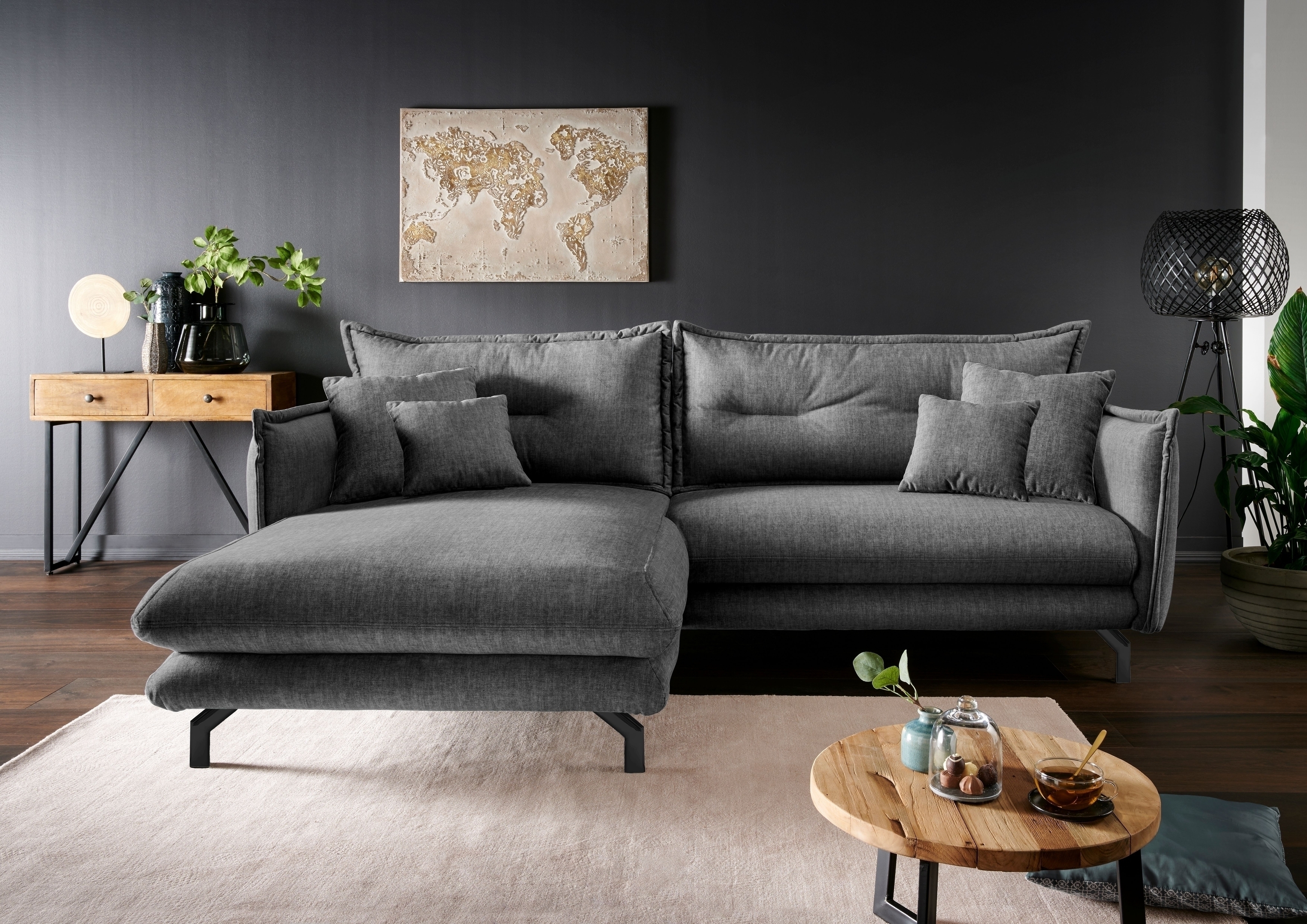 Ecksofa Launce in Anthrazit – moderne Polsterecke mit Recamiere links