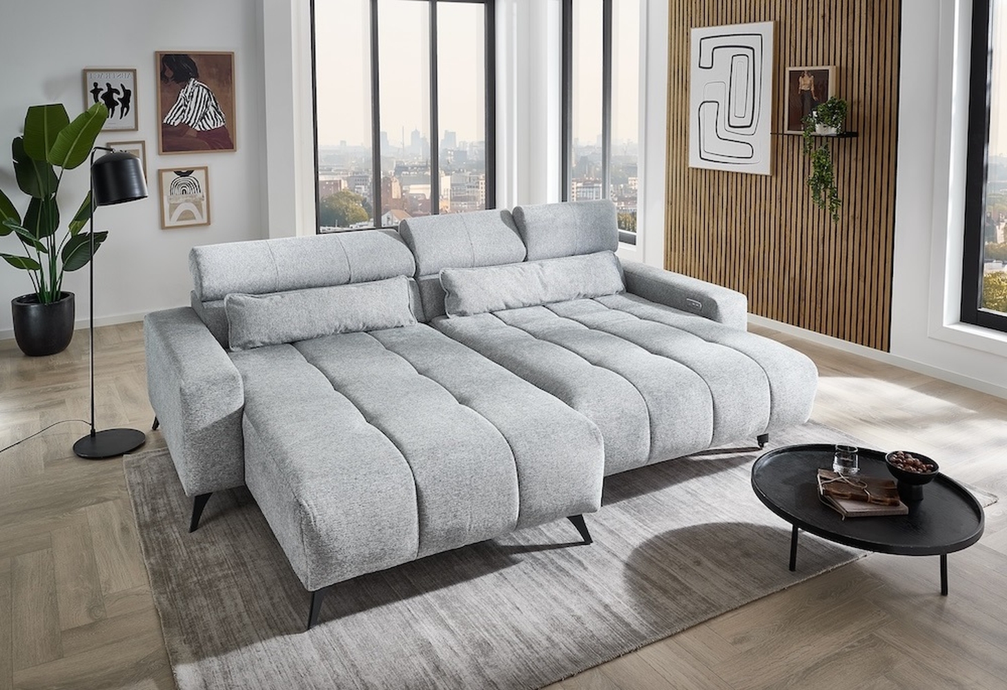 Doch nicht nur optisch überzeugt die Garnitur: Mit einer hochwertigen Nosagunterfederung und komfortablem Polyätherschaum bietet sie ein angenehmes Sitzgefühl, das auch nach stundenlangem Verweilen nicht nachlässt. Die elektrische Sitztiefenverstellung ermöglicht es, die Sitzfläche im Handumdrehen zu verlängern – perfekt für gemütliche Liegepositionen oder wenn unerwartet Besuch kommt.
