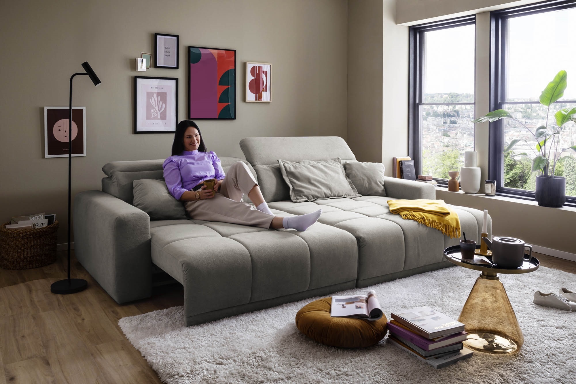 [metaDescription] => Die Polstergarnitur Belan in hellgrauem Curio 83 überzeugt durch XXL-Sitztiefenverstellung, manuelle Kopfteilverstellung und kubische Form Mit 288x176 cm bi